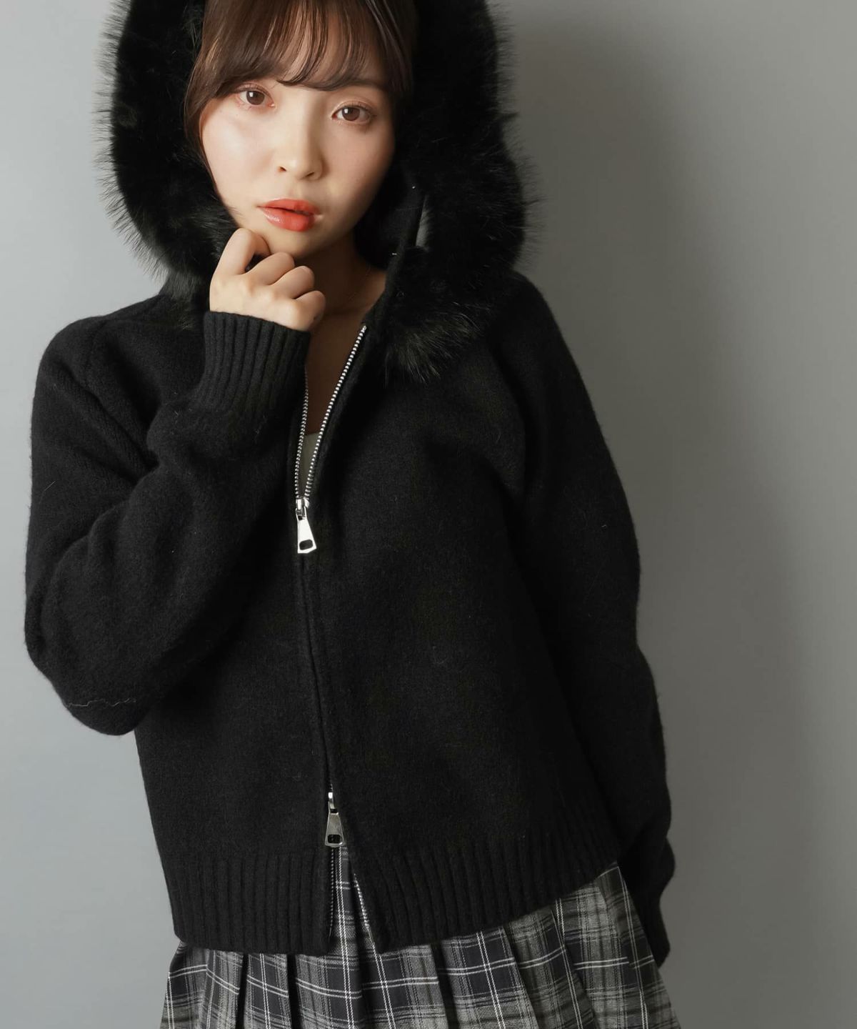 小顔見えも叶うボリュームフェイクファー✨ ニットジップパーカー/フェイクファー取り外し可能/5色展開