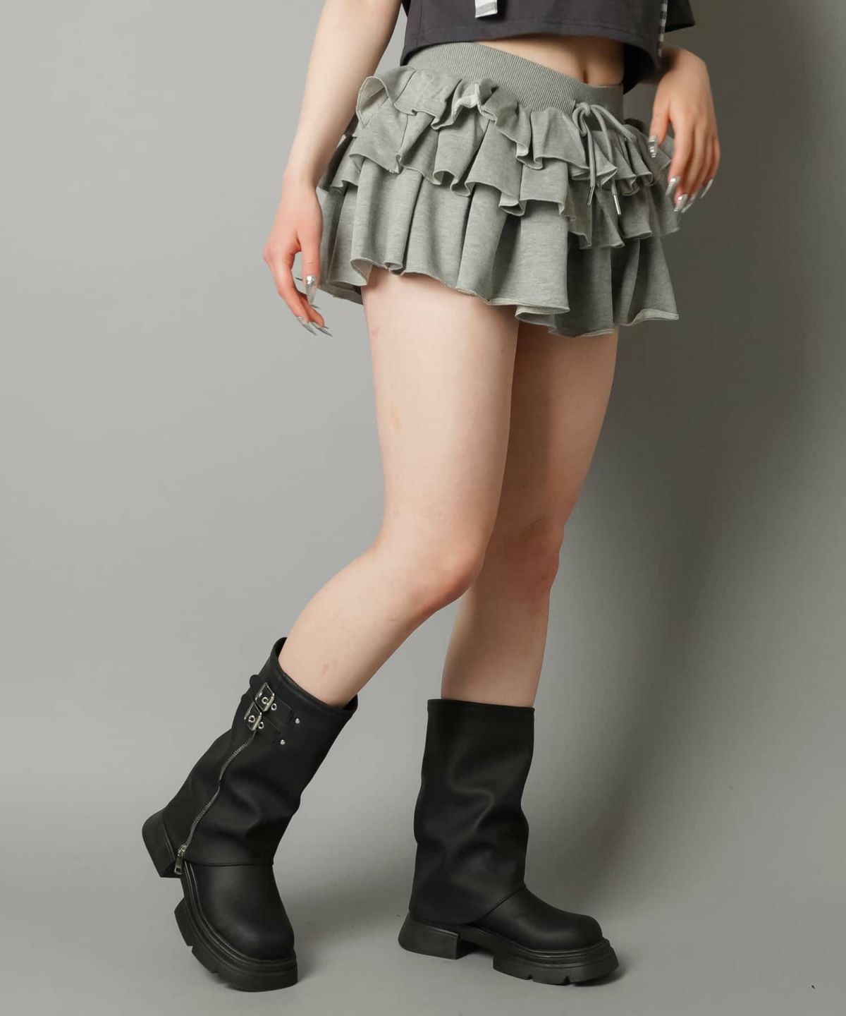 セットアップ対応! 【72%OFF】フリルティアードミニスカート/インナーパンツ付き