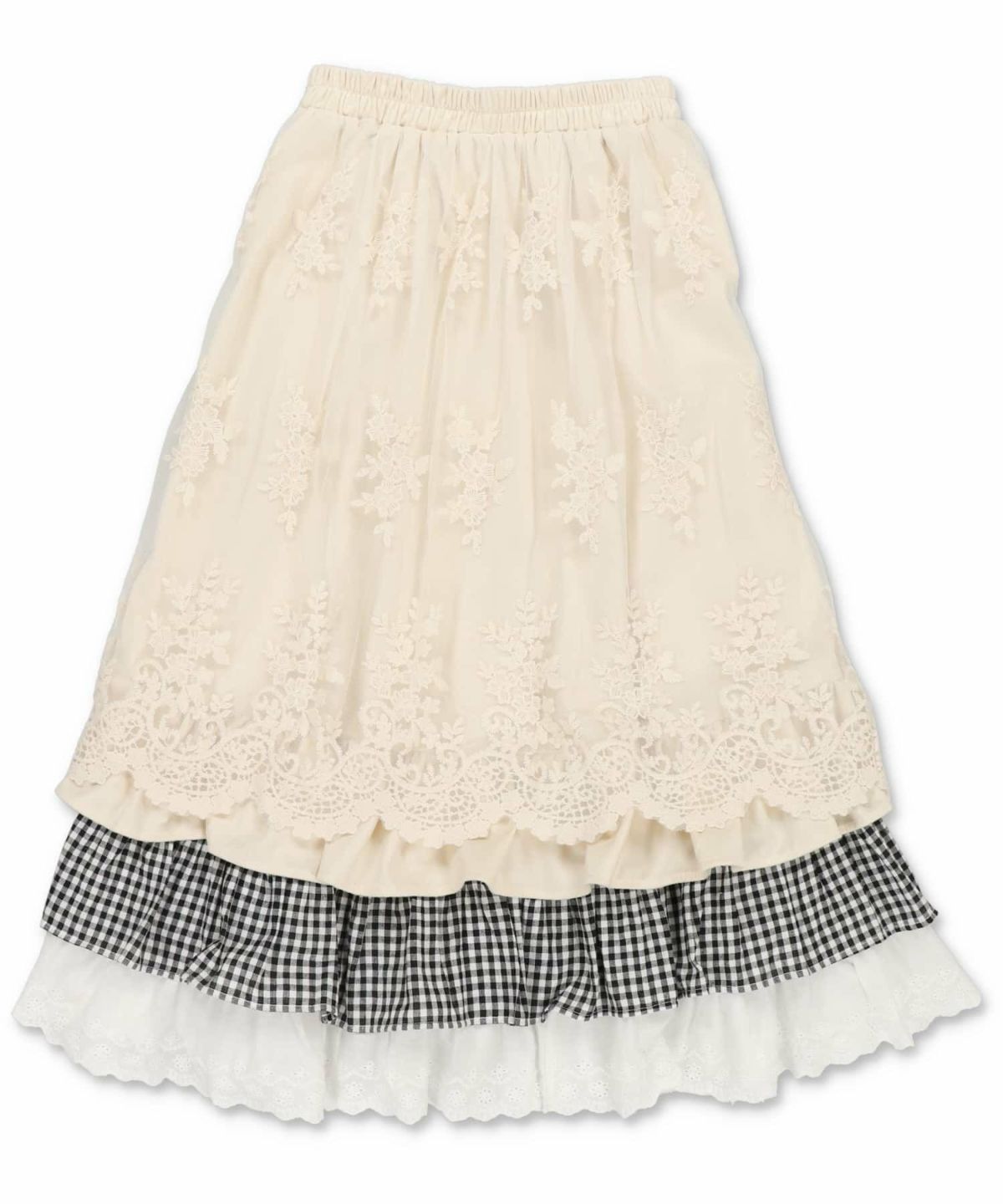 【75%OFF】ロングスカート/レースレイヤードチェック/#NEO森ガール