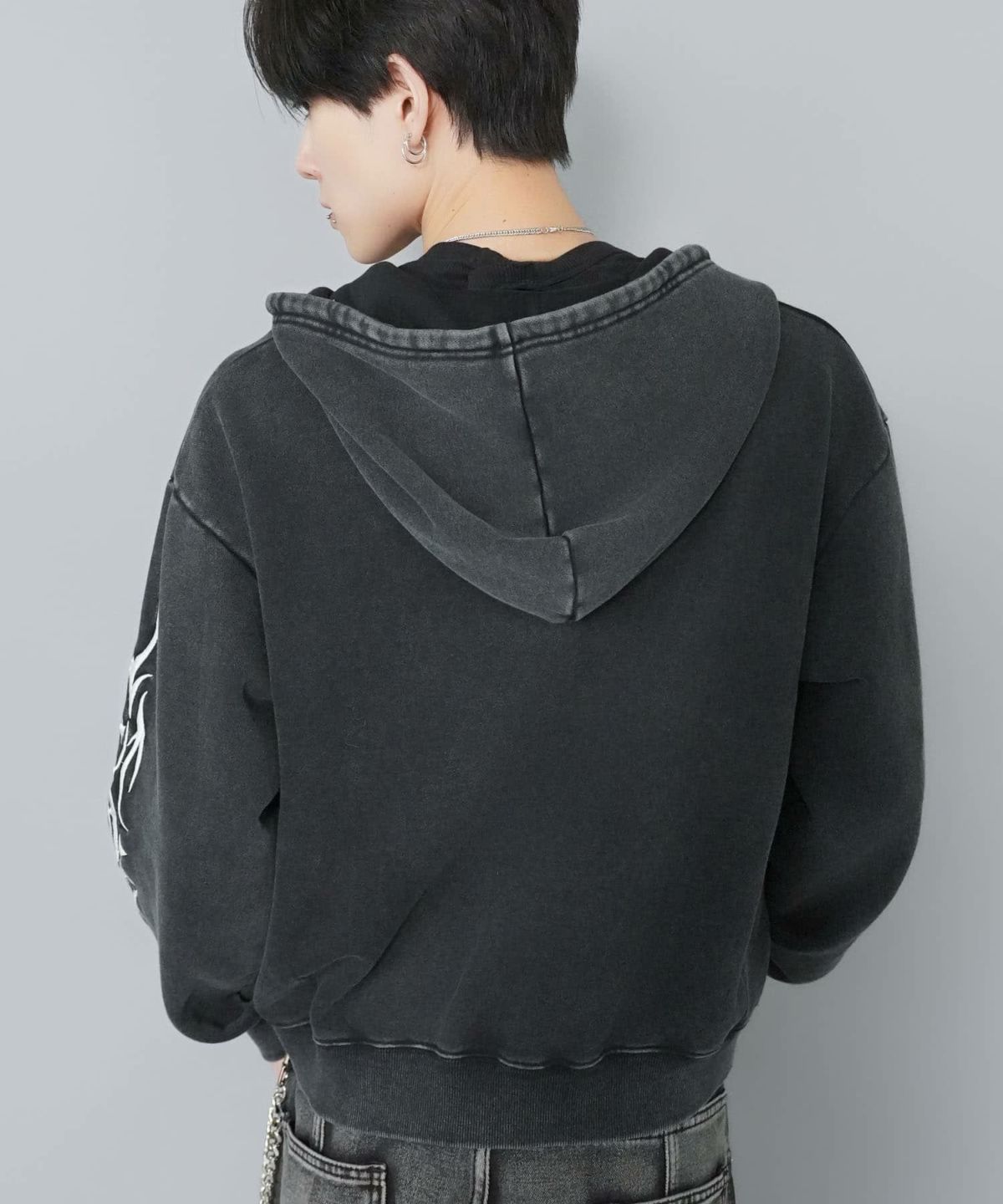 レギュラー丈ダブルジップパーカー/ハートスパイダー/バックプリントデザイン