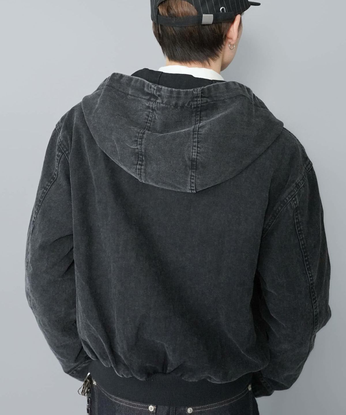 レギュラー丈ダブルジップパーカー/クロス/バックプリントデザイン