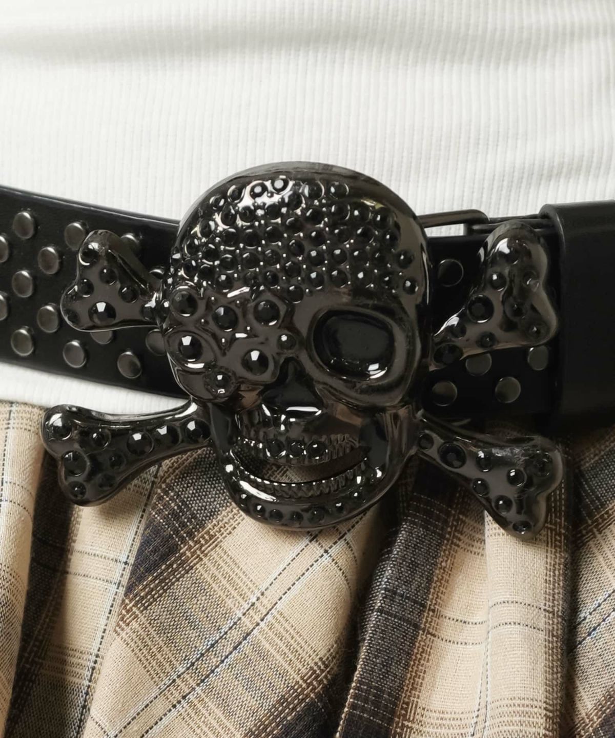 合皮ベルト/フラッグチェック/スタッズ