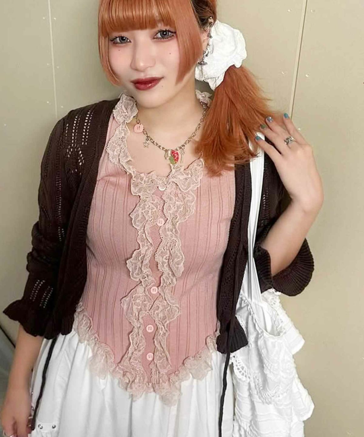 レイヤードにもおすすめ! ケーブルニット/フリルリボン/#ロマンスパンク