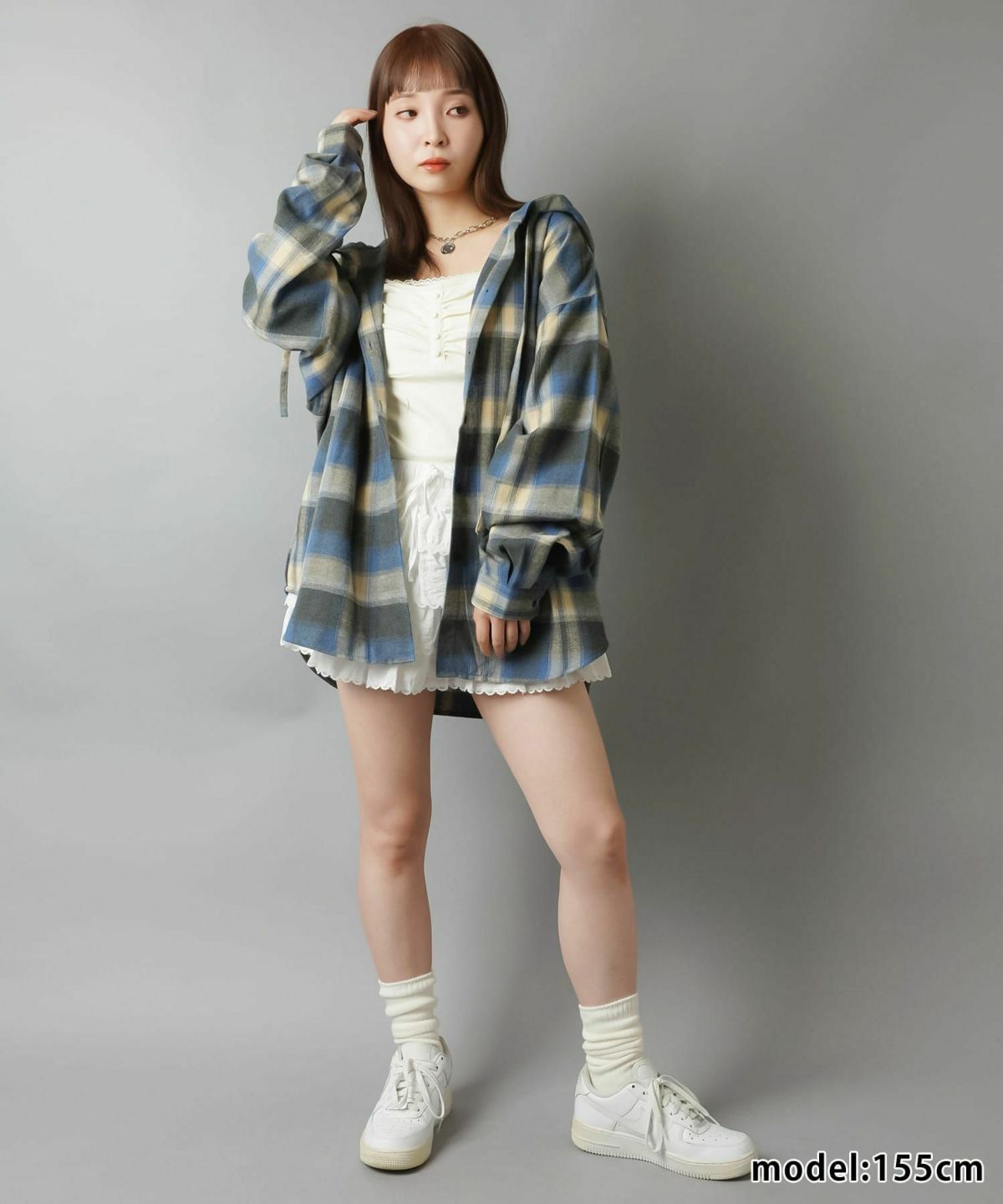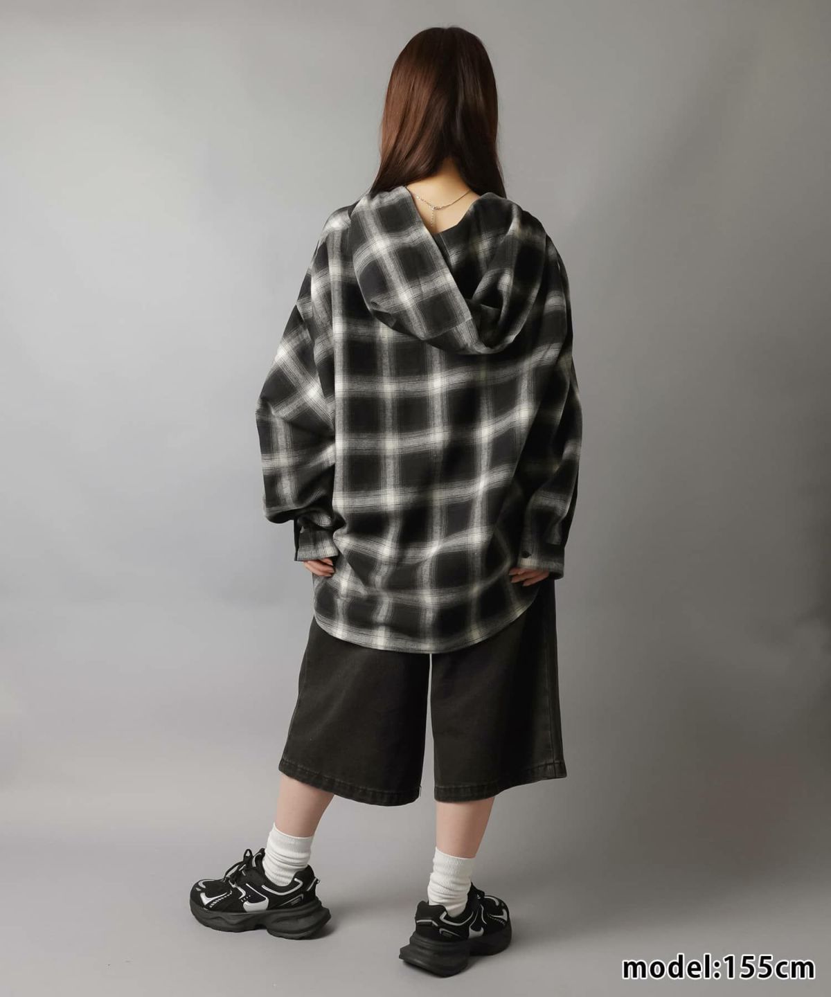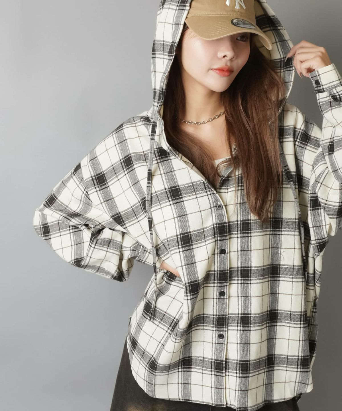 【34%OFF】フード付きオーバーサイズチェックシャツ/全5色