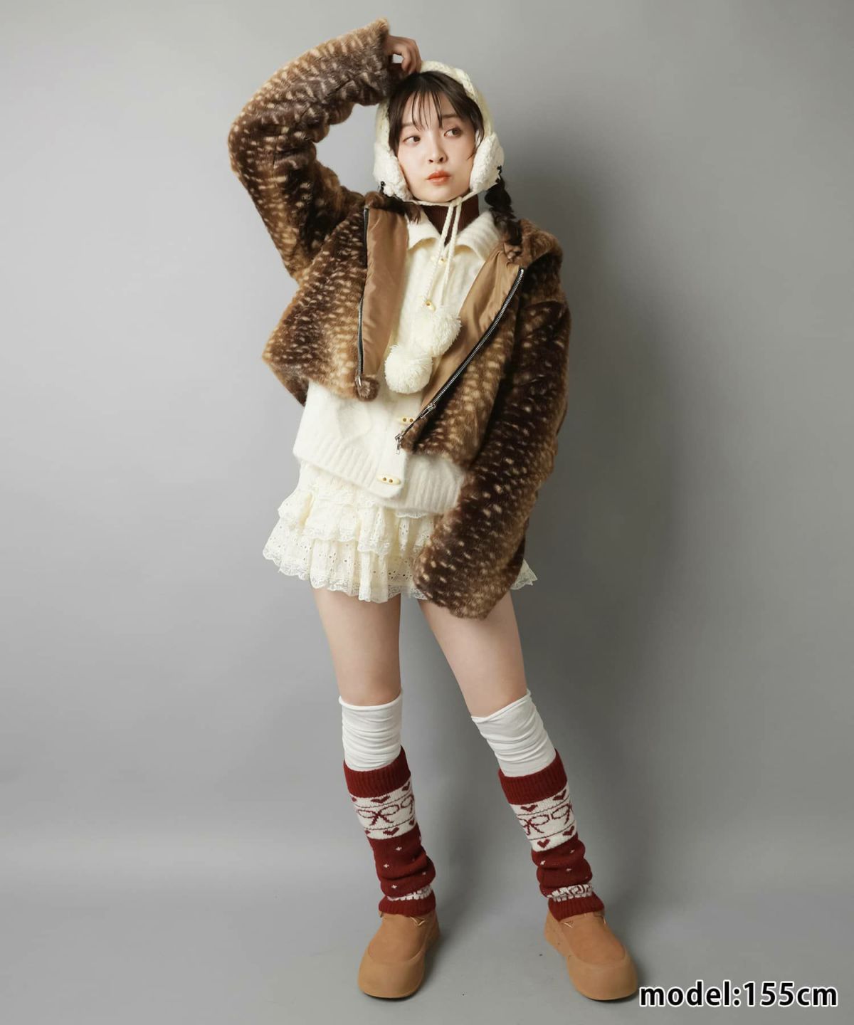 マフラーにもなる🐾 【50%OFF】耳付きフェイクファーアニマルキャップ/ロングポケット/ヒョウ/ウルフ/#平成ギャル