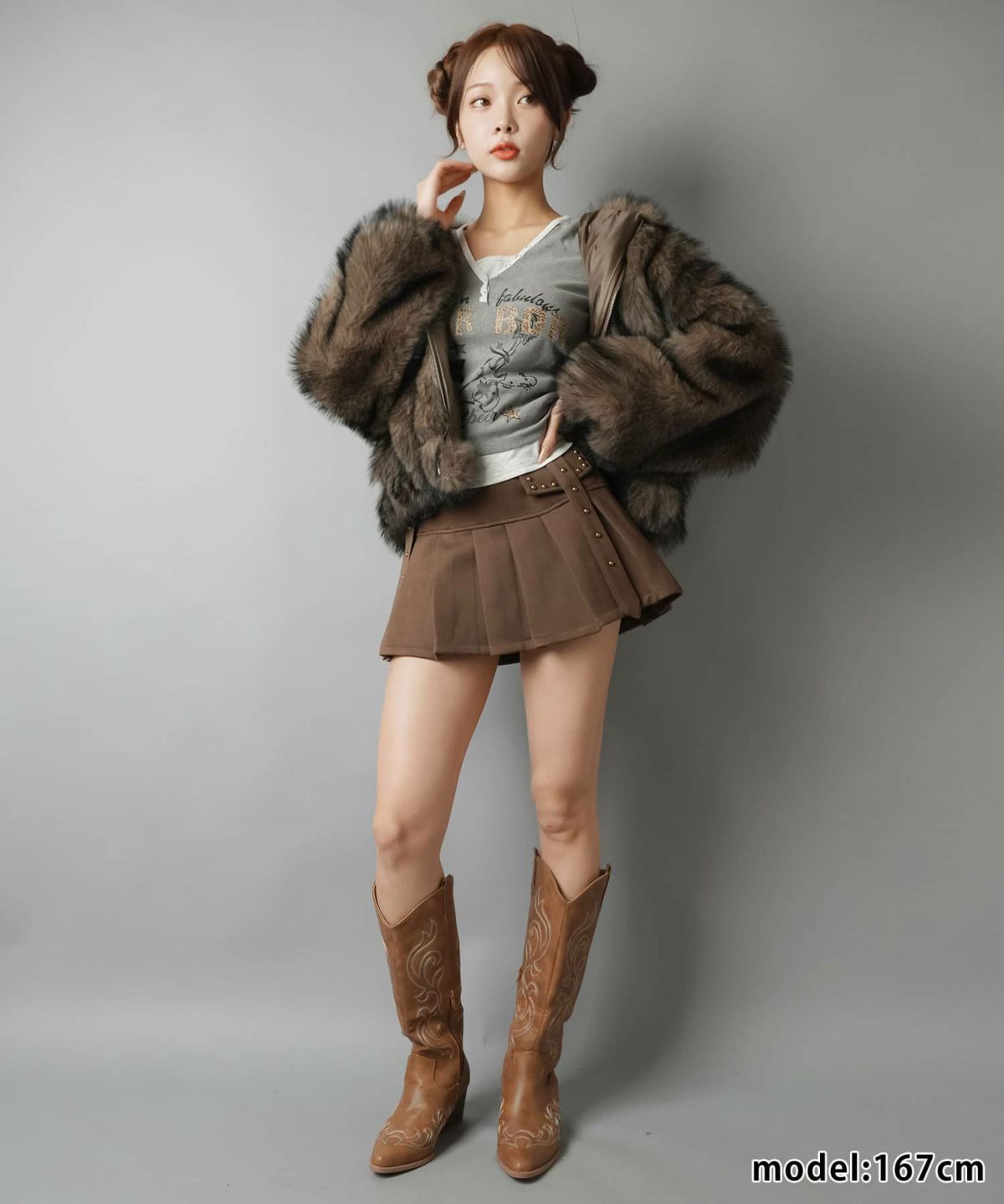 スエードプリーツミニスカート/スタッズ/インナーパンツ付き