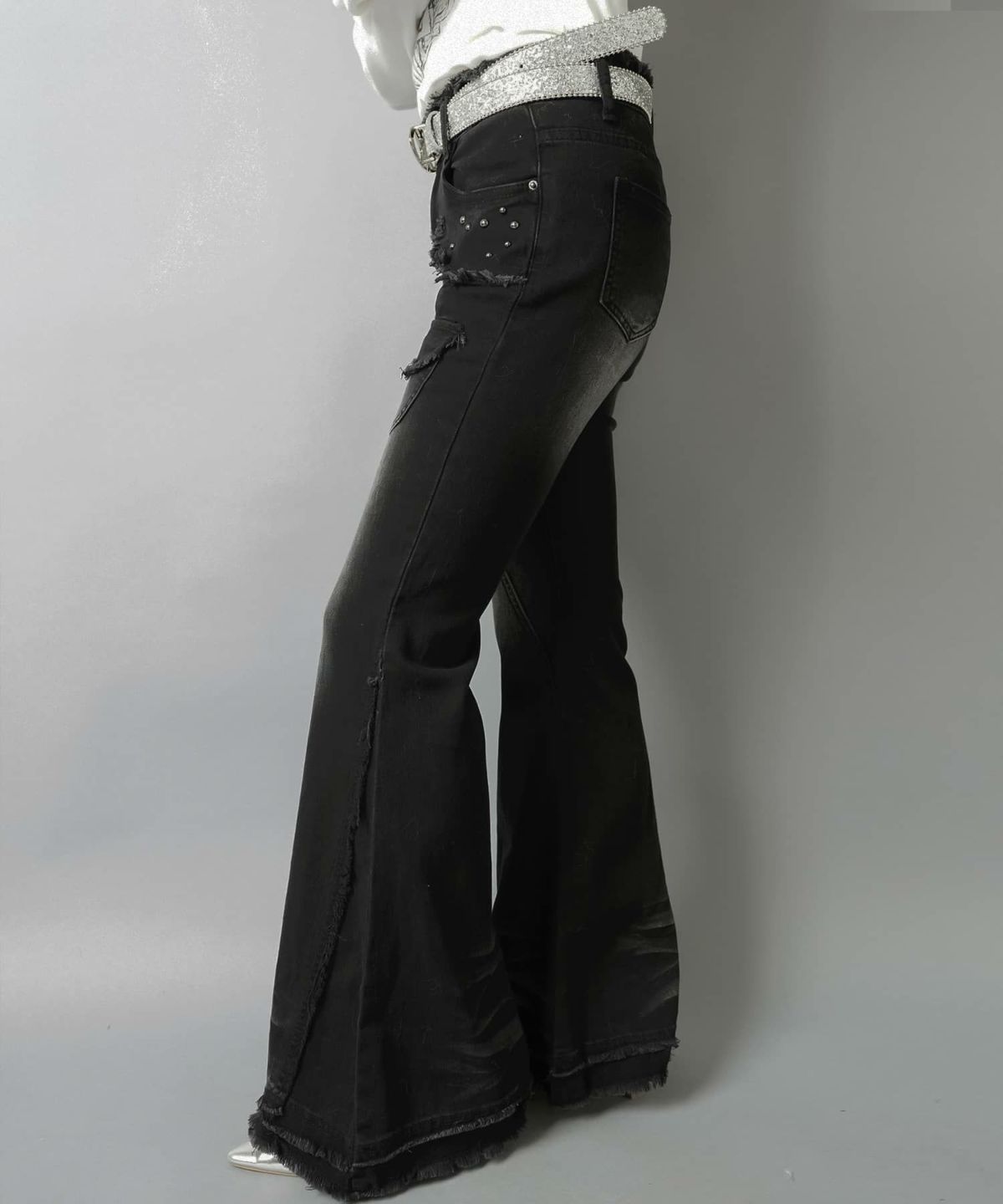 デニムフレアパンツ/ポケットスタッズ/2サイズ展開