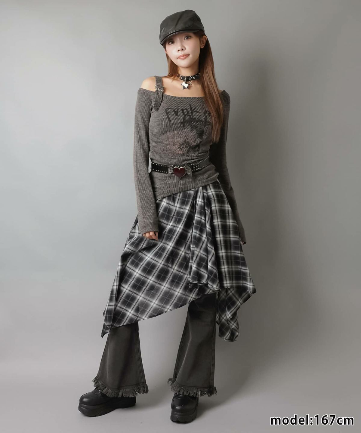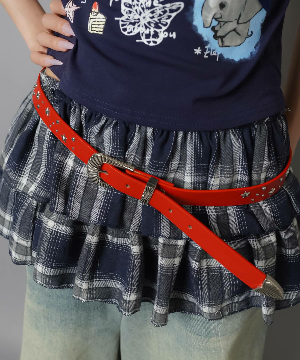 上からベルトを付けるのが今っぽスタイル💘