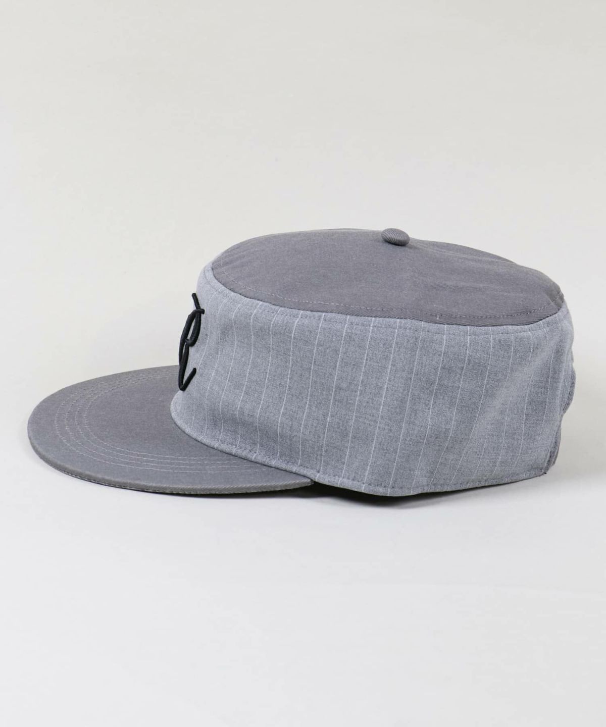 ピルボックスキャップ/ピンストライプ/ワンポイント刺繍ロゴ/ユニセックス