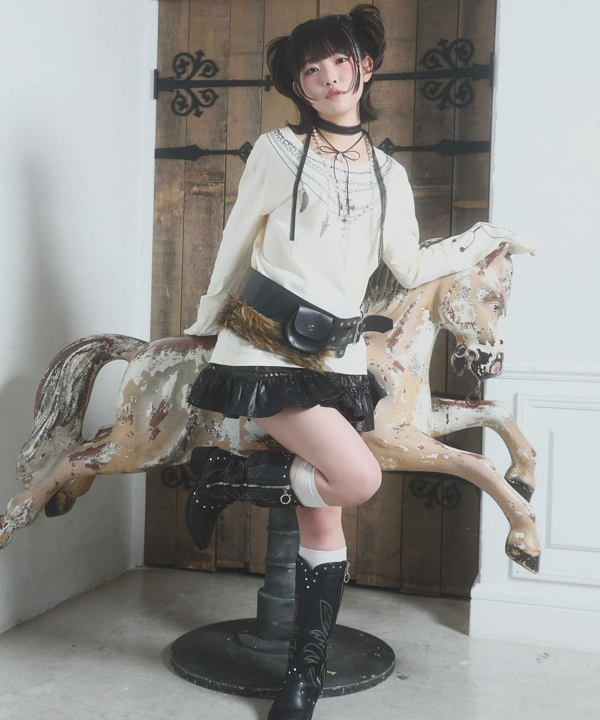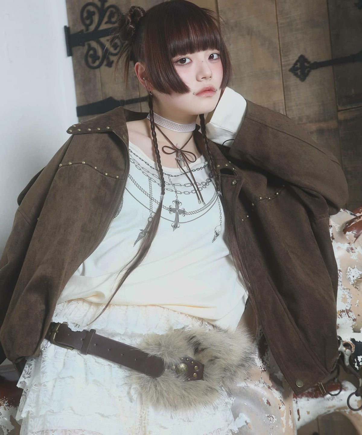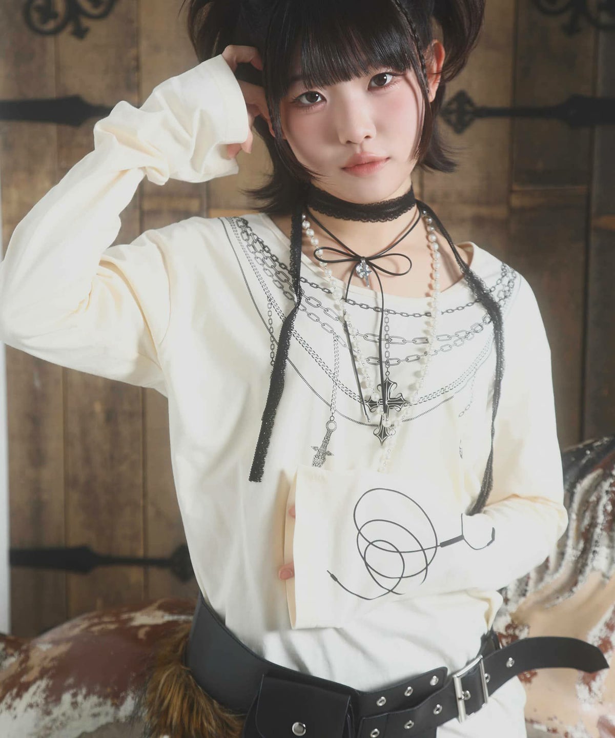 【26%OFF】『グルーミー×SPINNS 』 チョーカー付2wayトップス