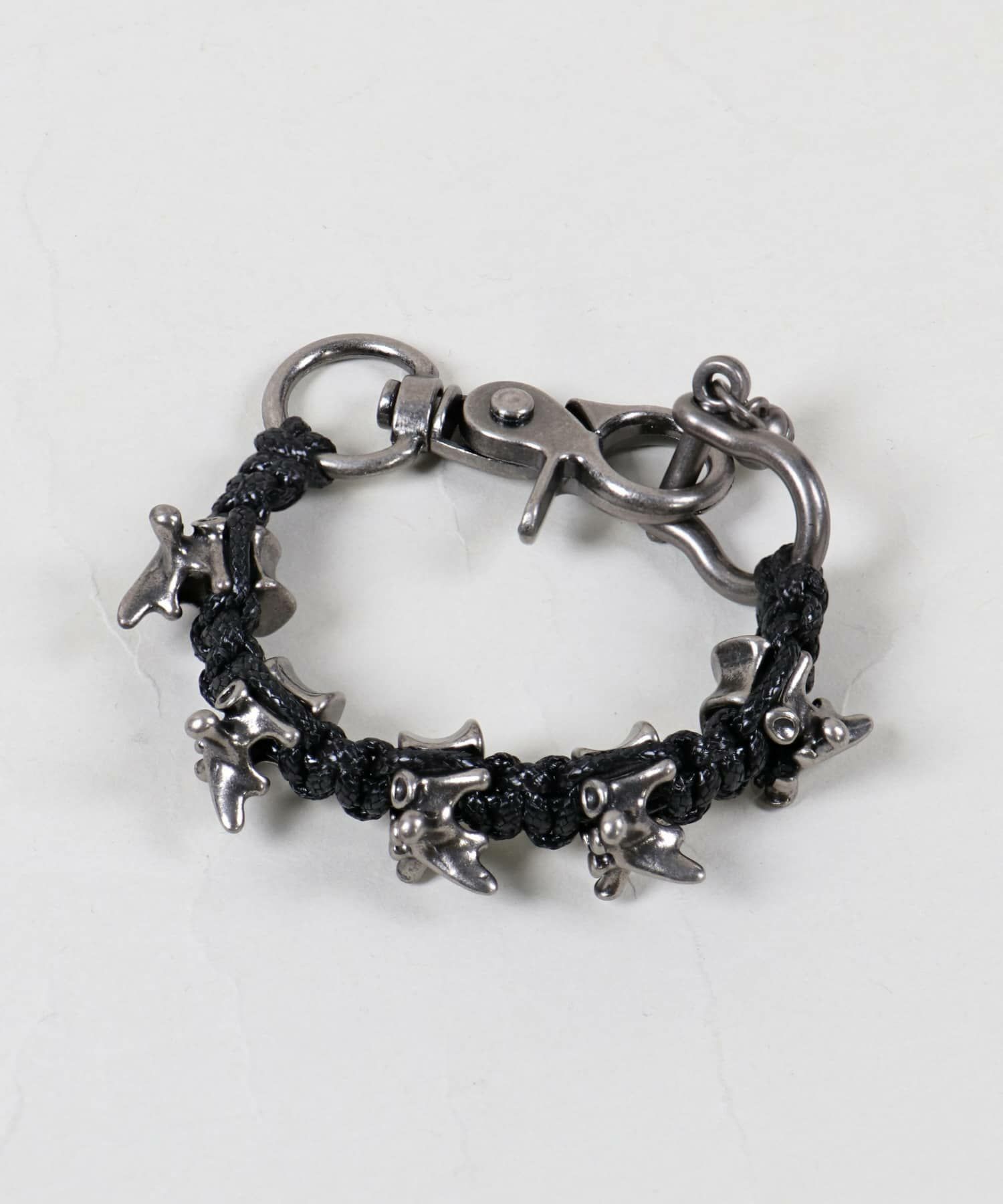 ブラックコードブレスレット/バーブワイヤー/アンティークシルバー/ユニセックス