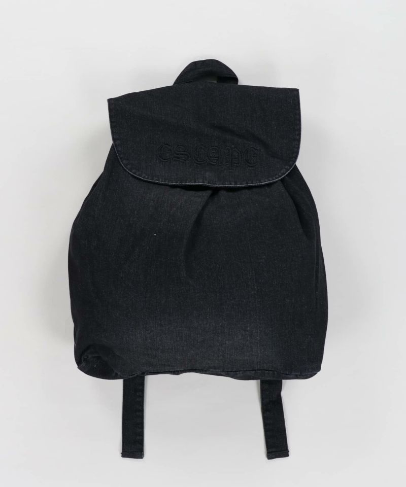 フェード加工デニムナップサック/刺繍ロゴ/大容量リュック