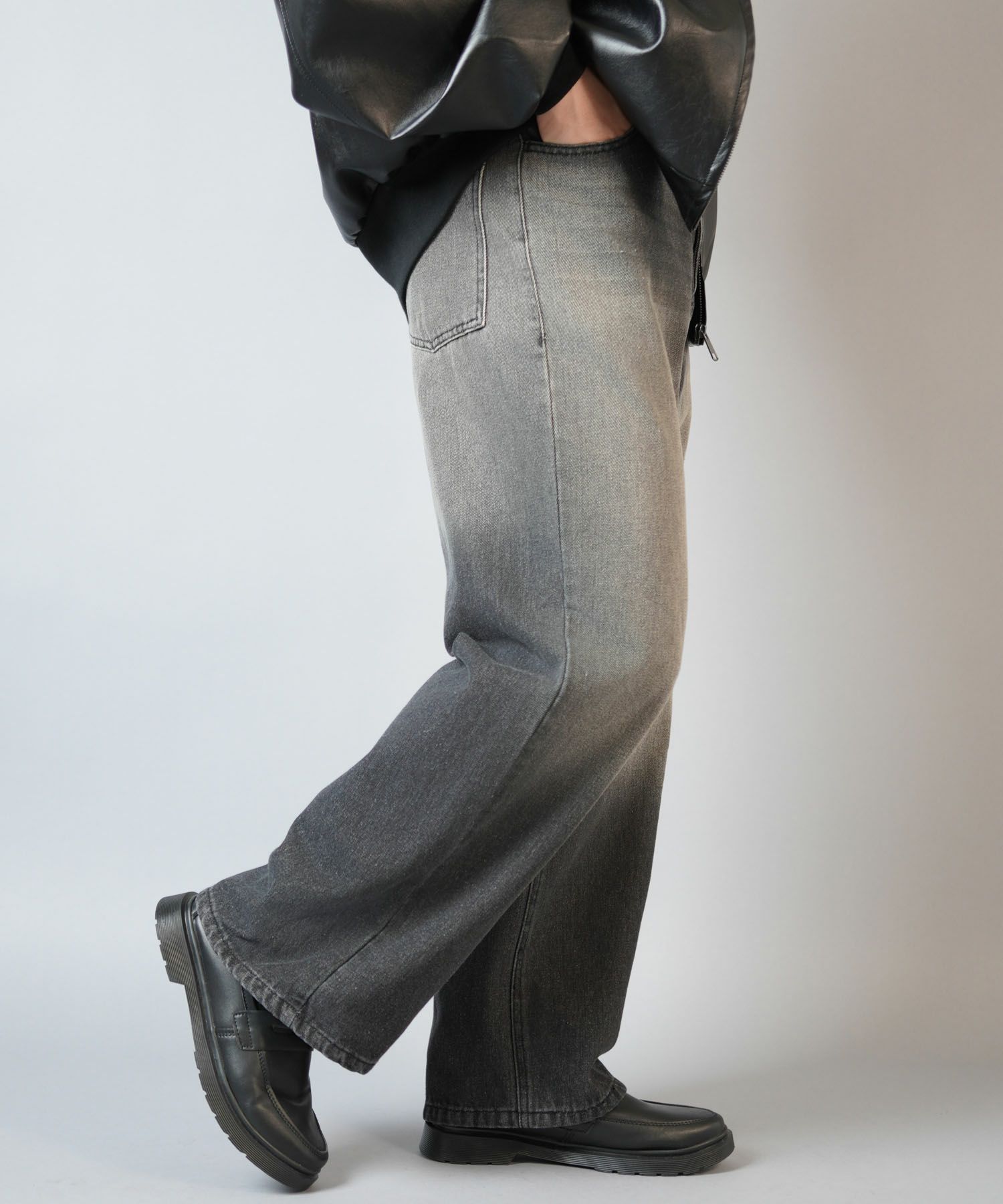 ヴィンテージライクな色味が魅力のこちらのデニムワイドパンツは、