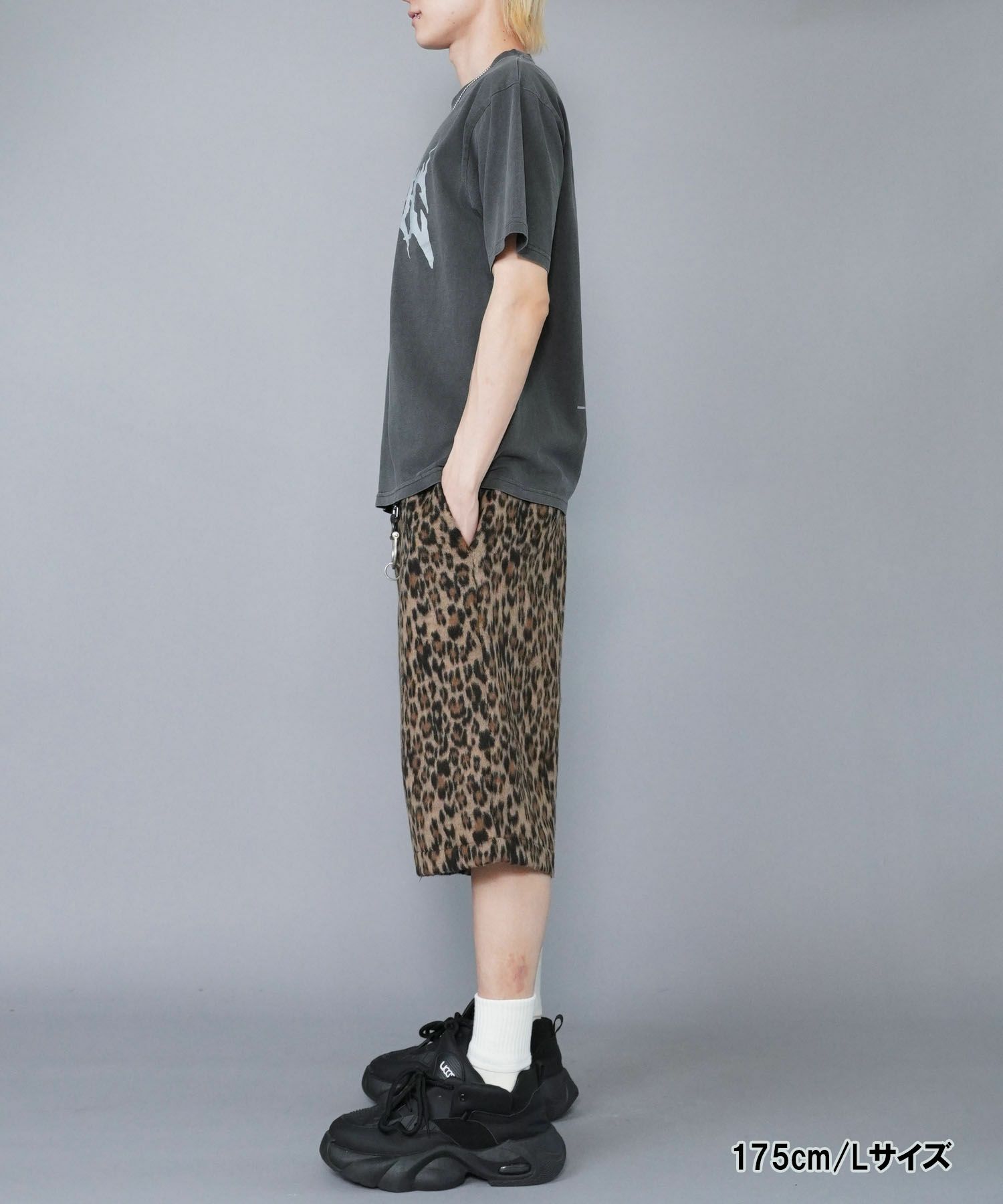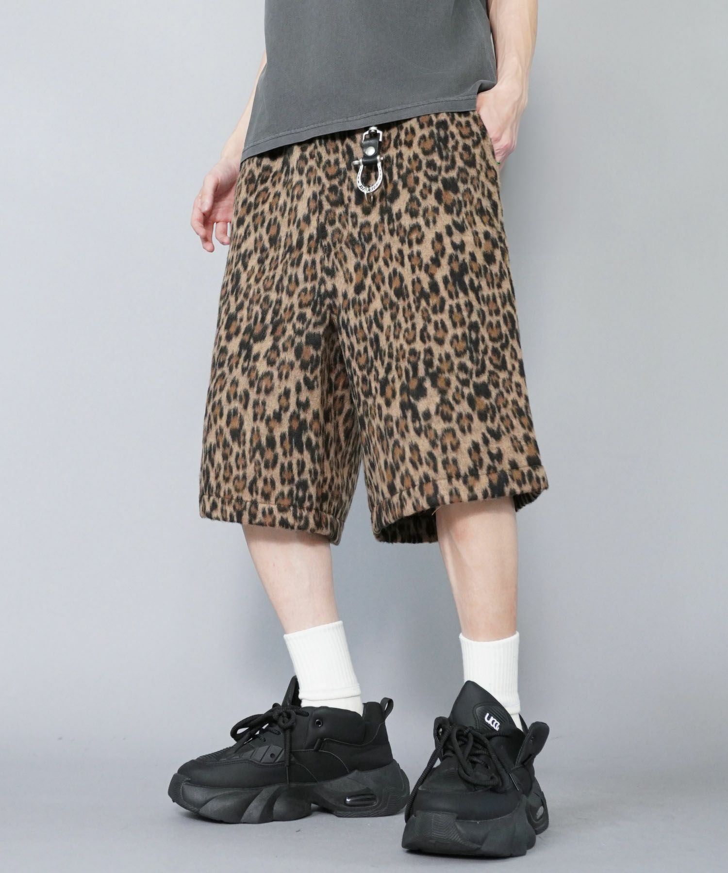 ストリート感漂うレオパード柄が主役のシャギーハーフパンツ。