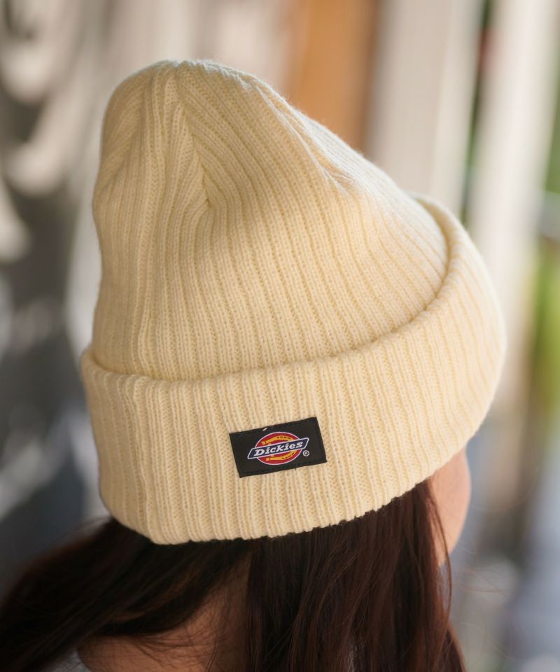 ブランドロゴ刺繍を施したシンプルなニットワッチ。