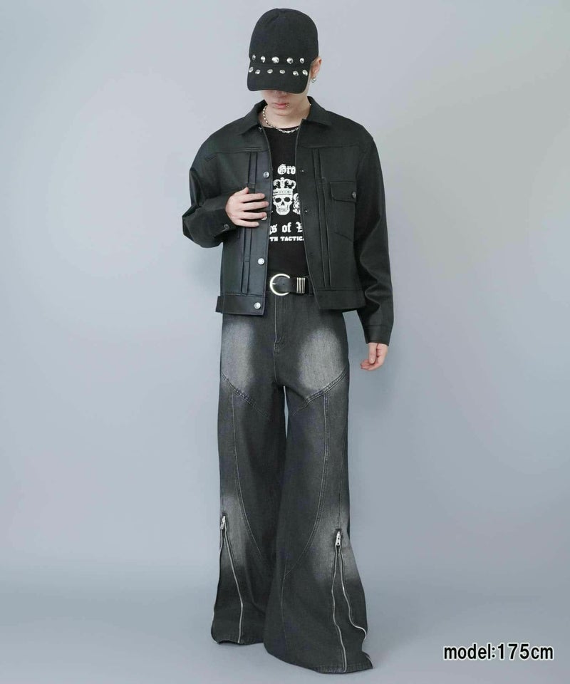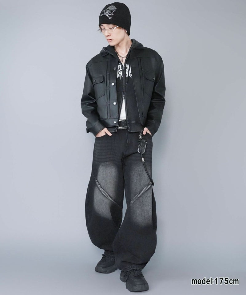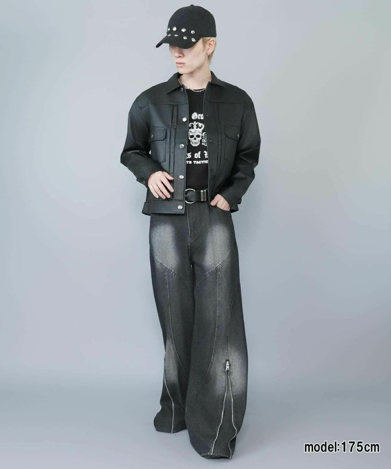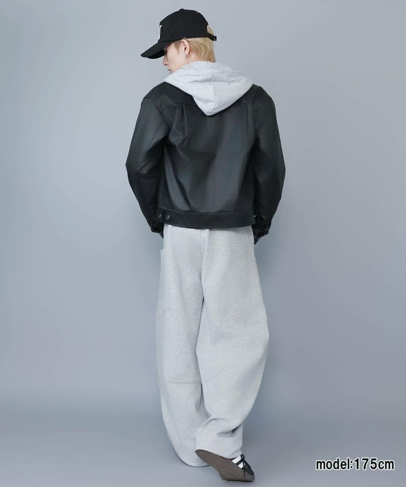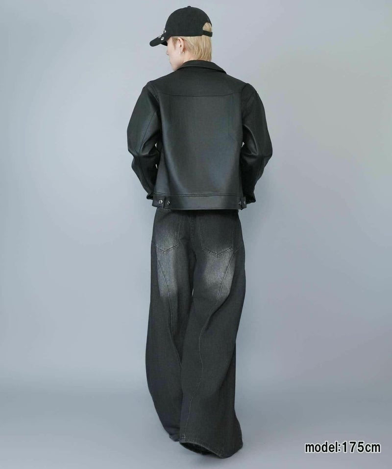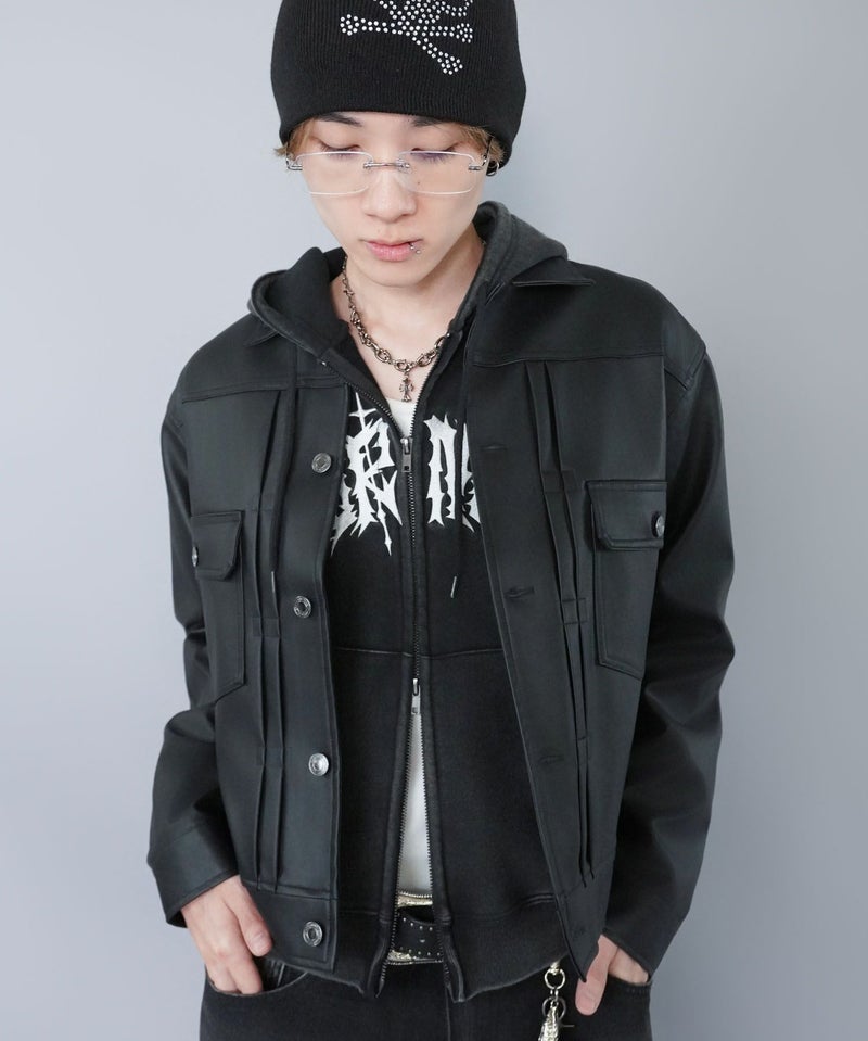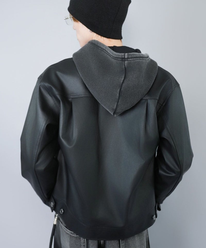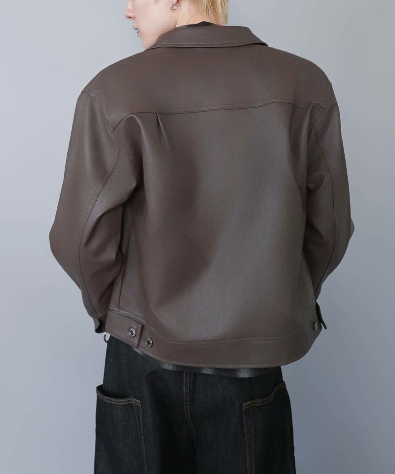 ショート丈のフェイクレザージャケット。