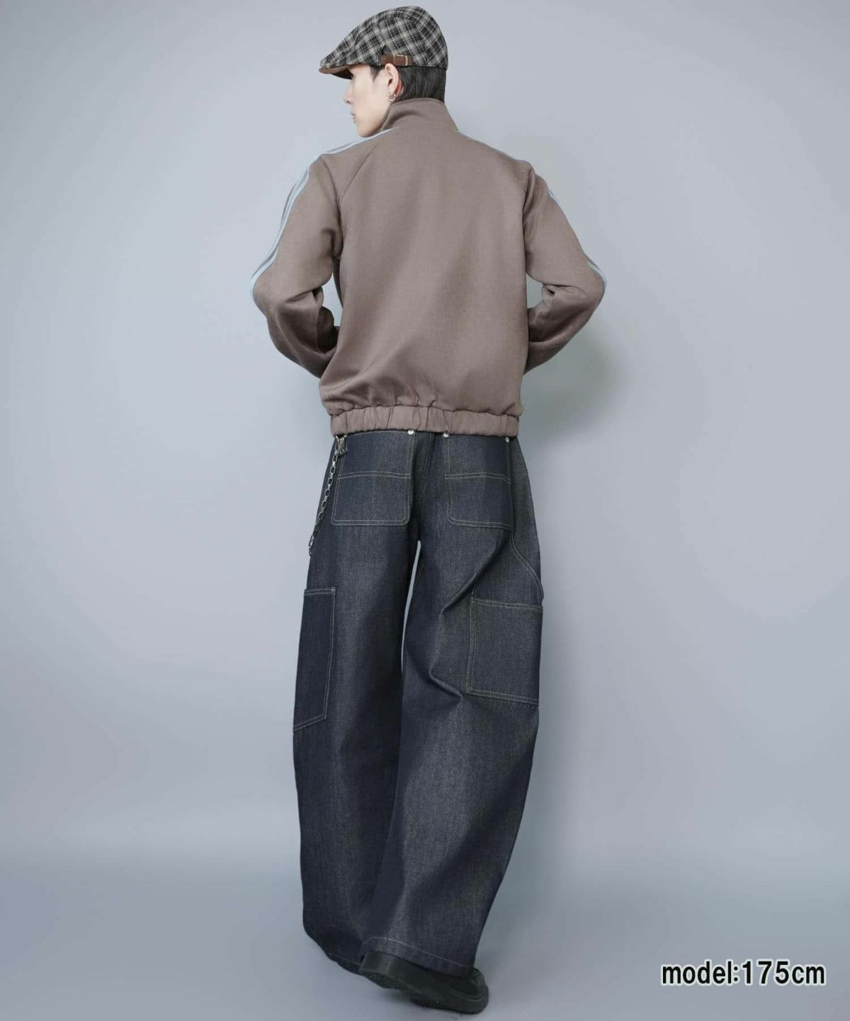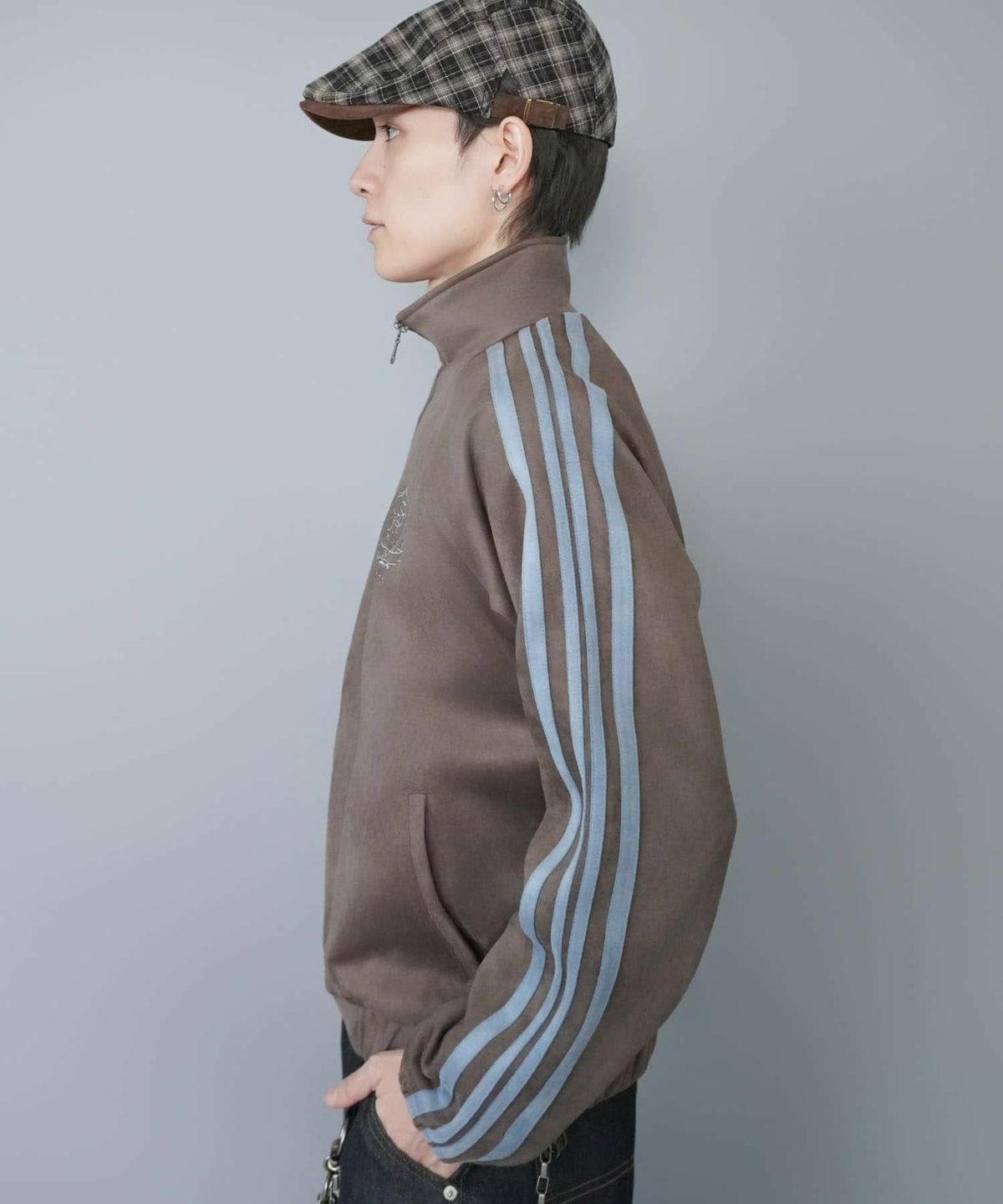 短丈フェイクスエードトラックジャケット/エンブレム刺繍/ジャージブルゾン/ユニセックス
