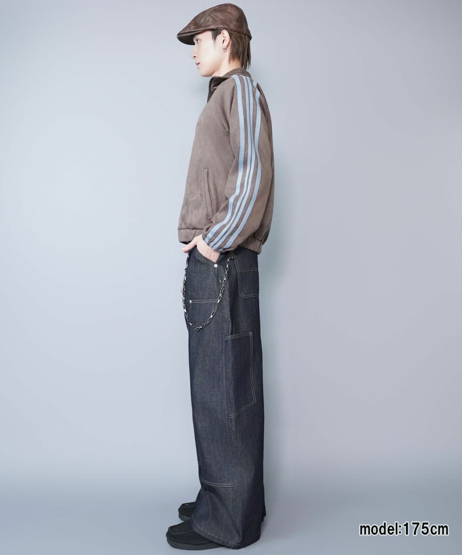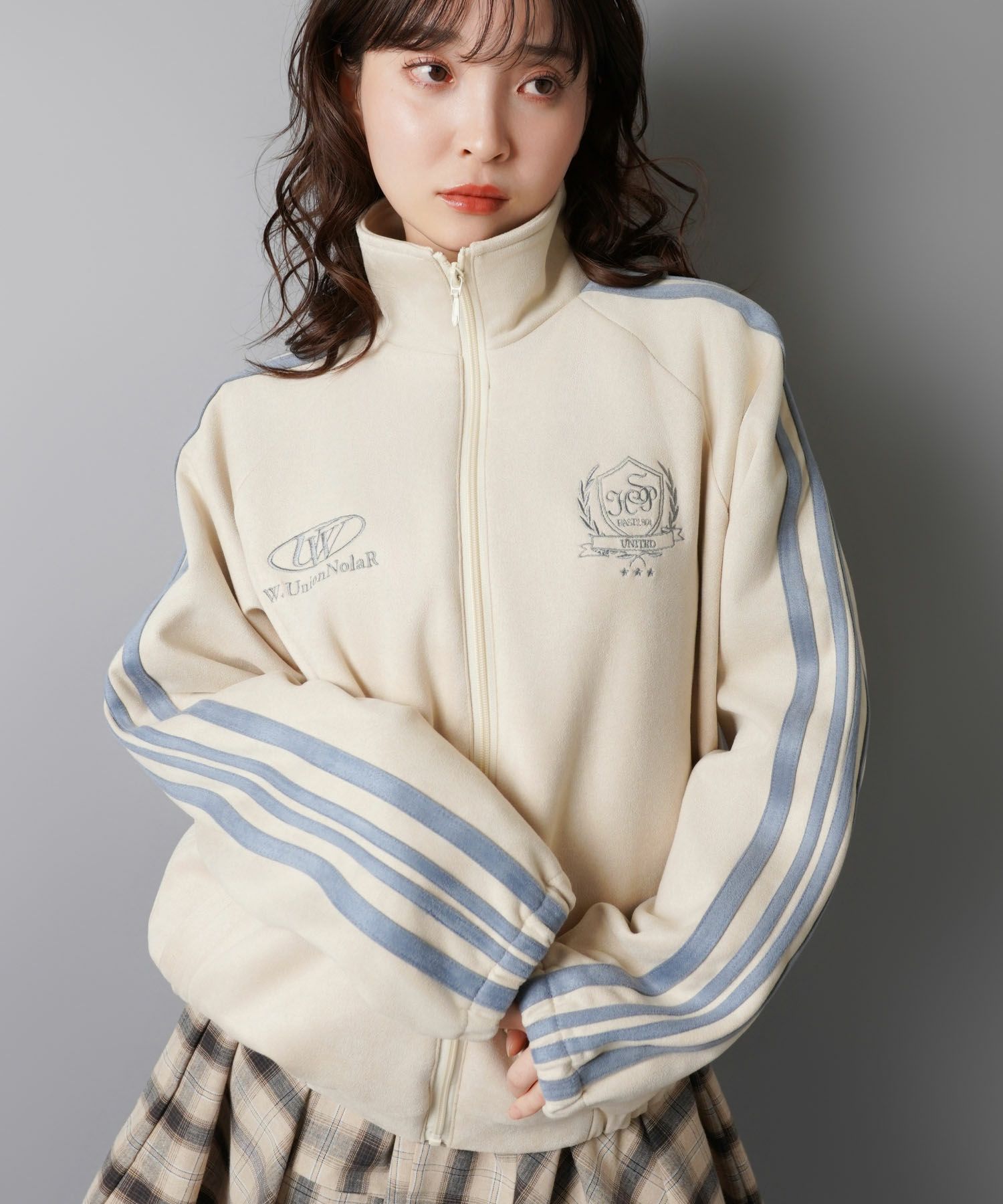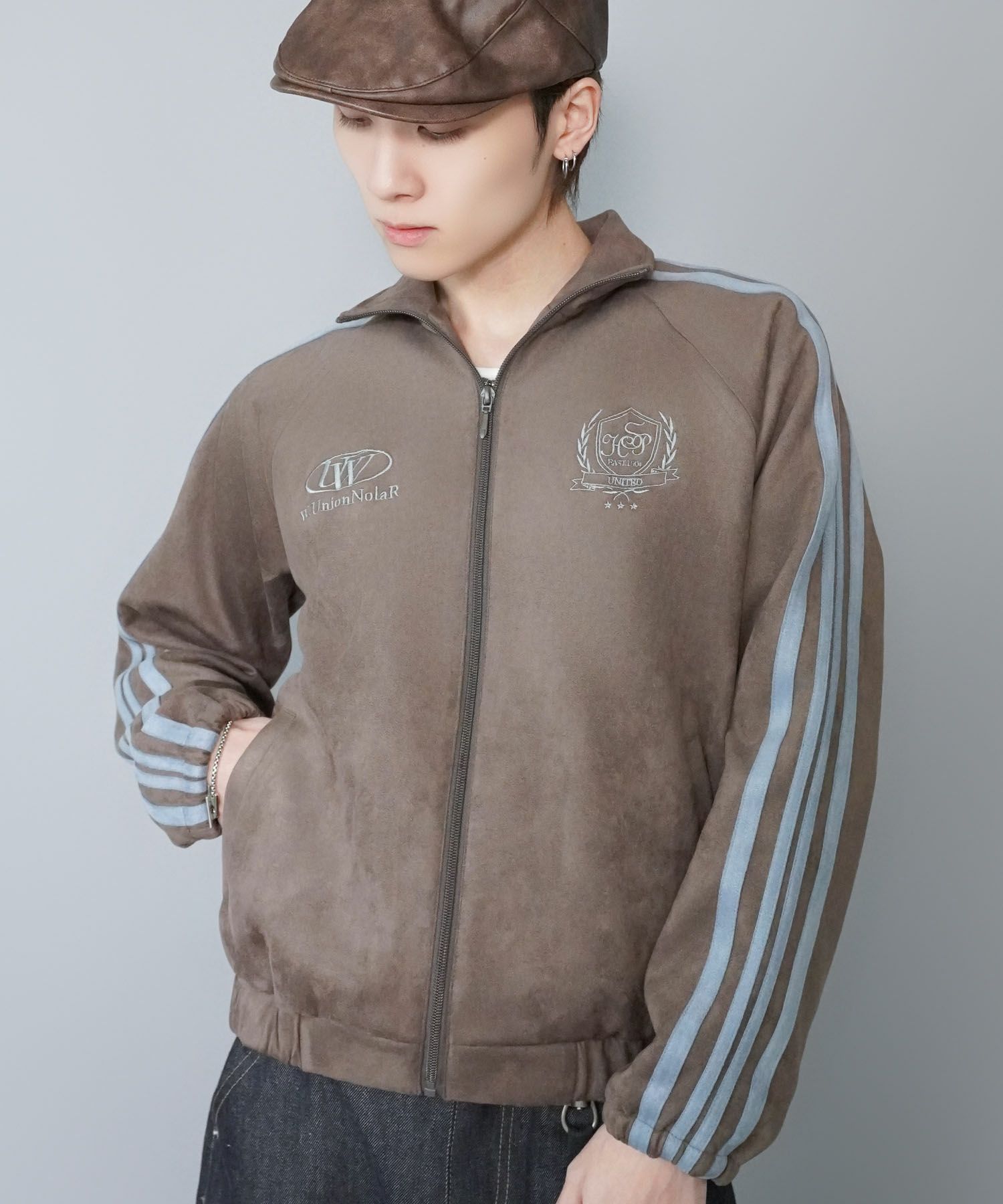特徴のフェイクスエードトラックジャケット。