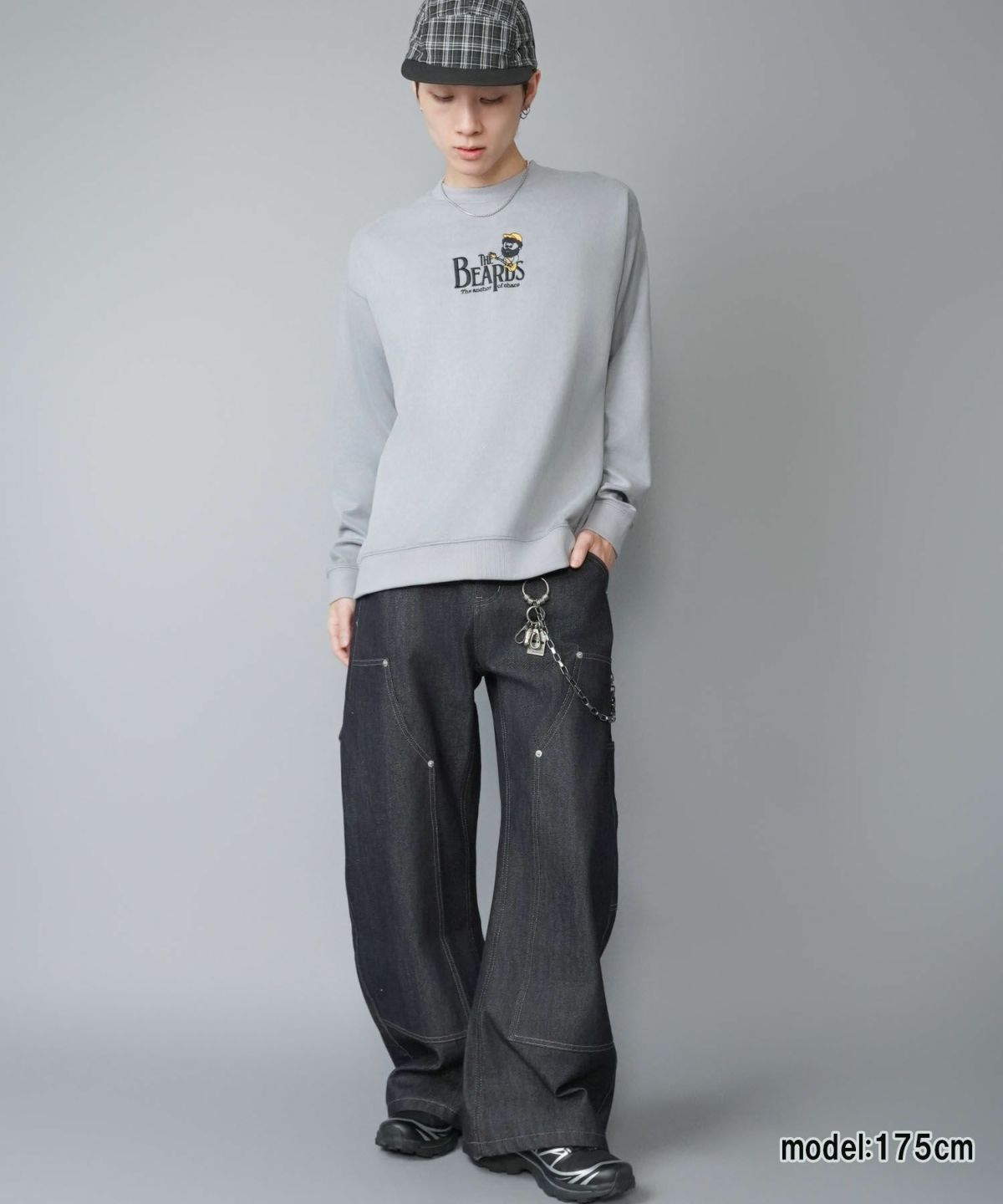 ひげおじさんフェイクスエードスウェット/バンド/刺繍ロゴ