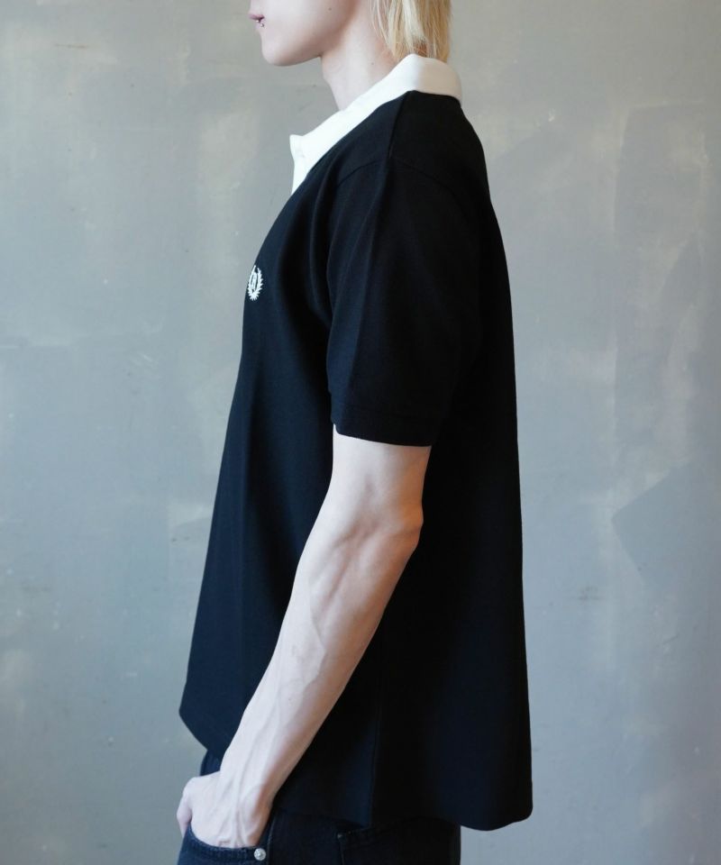 胸元のエンブレム風ワンポイント刺繍が映える、