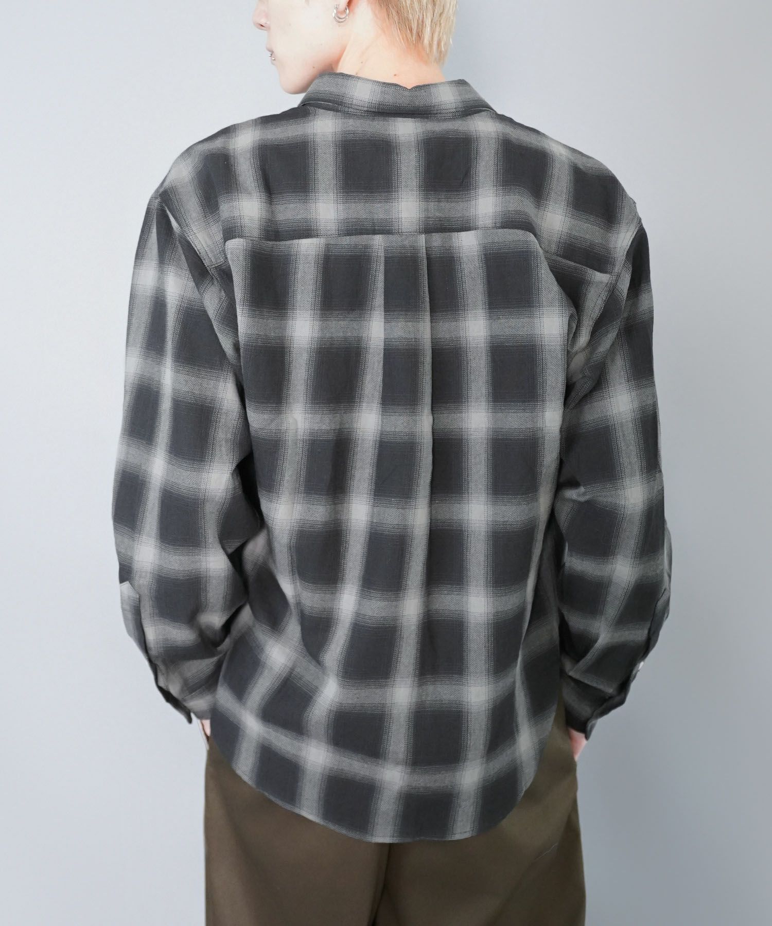 【90%OFF】オンブレオープンカラーチェックシャツ/バックロゴ