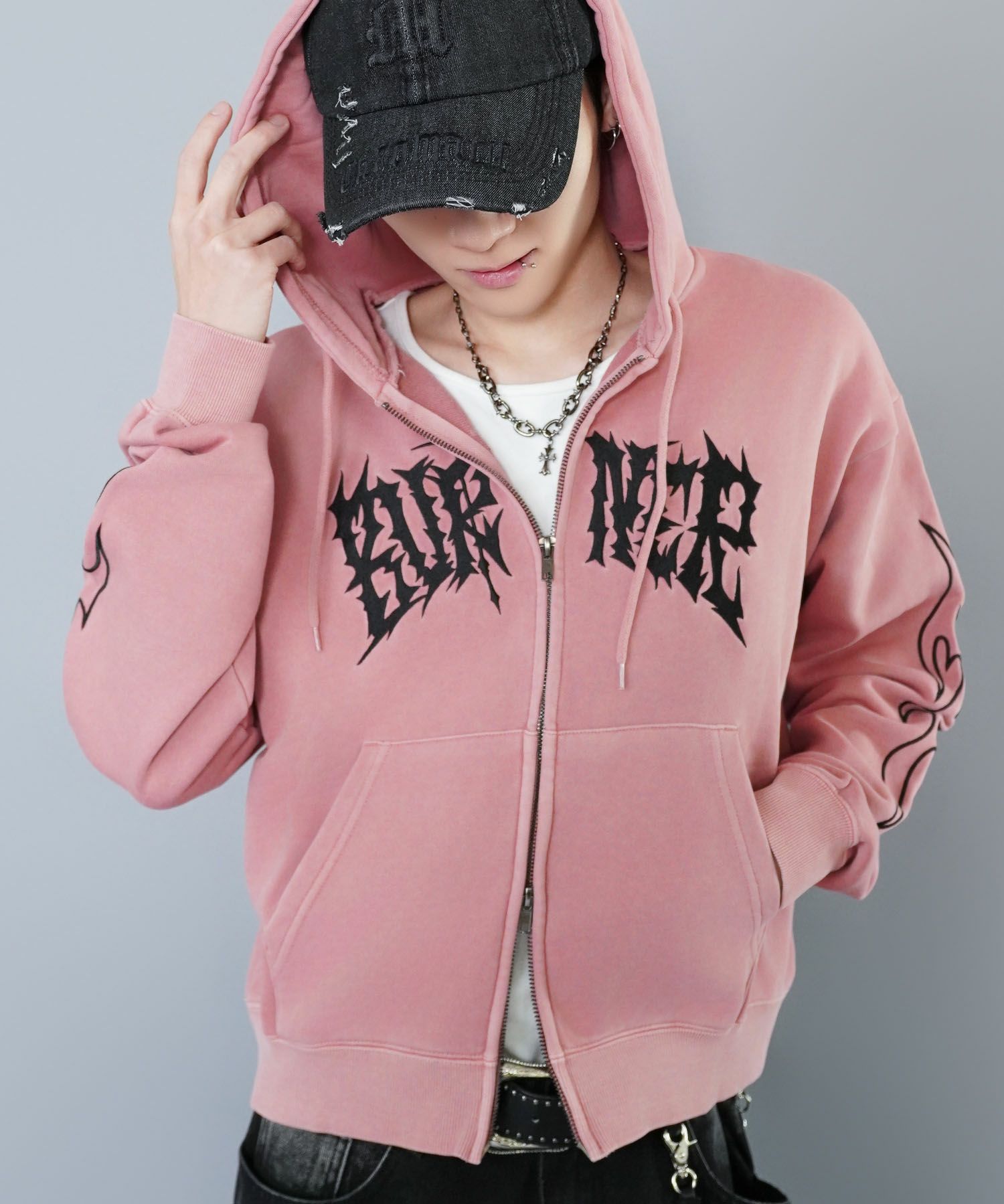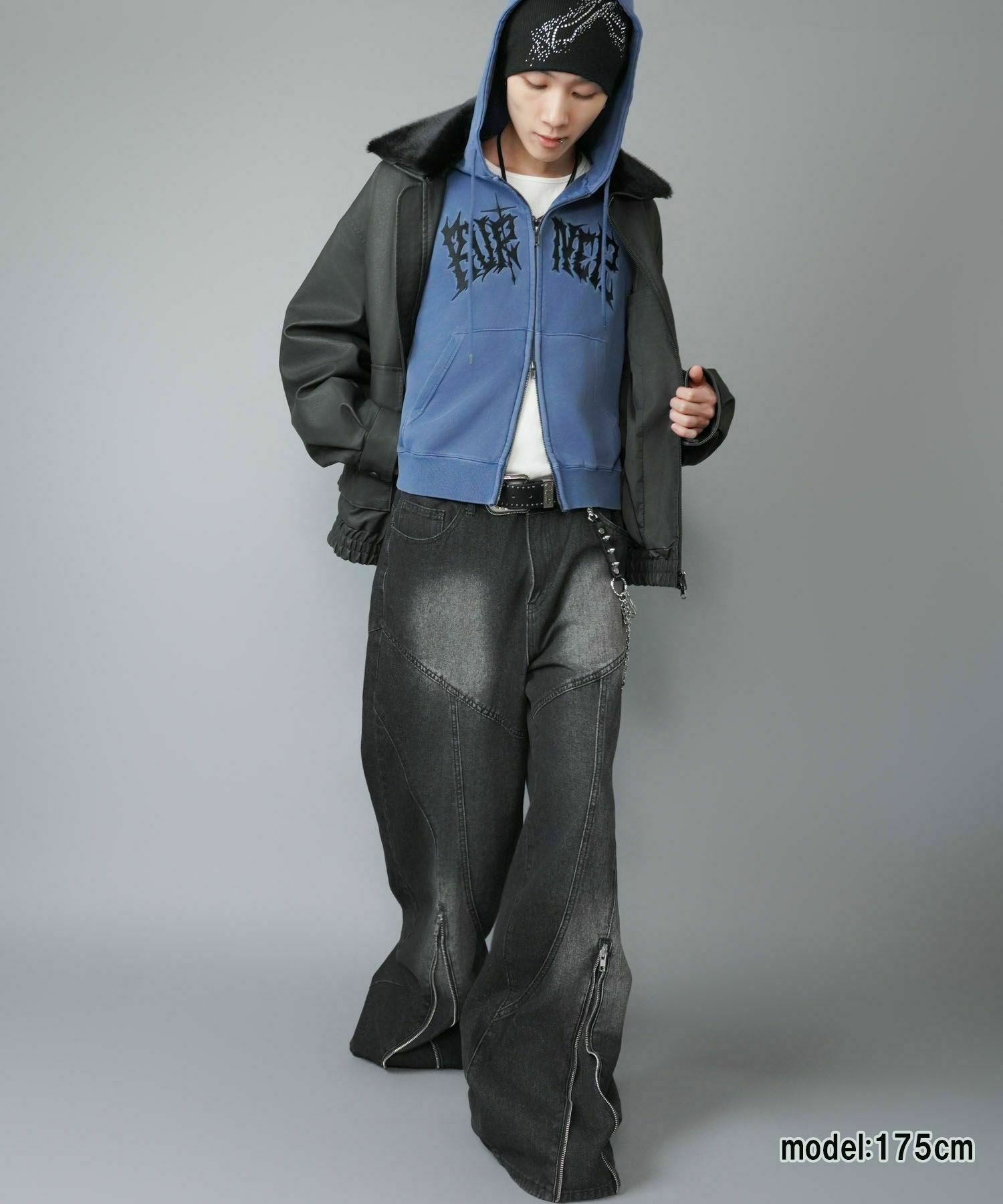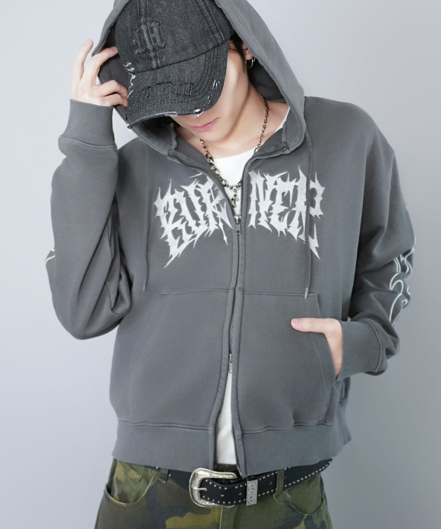 グランジ感漂う 短丈ダブルジップパーカー。