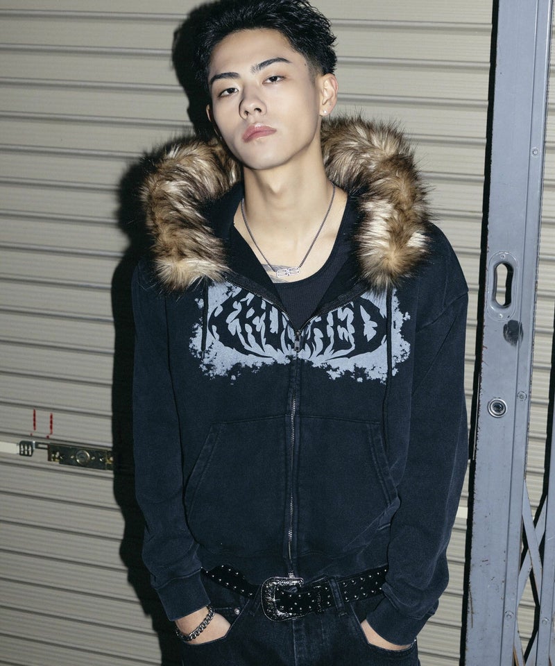 インパクト抜群の短丈ジップパーカー。