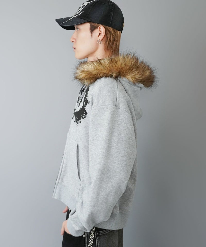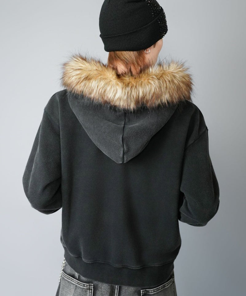 フードには存在感のあるフェイクファーをあしらい、