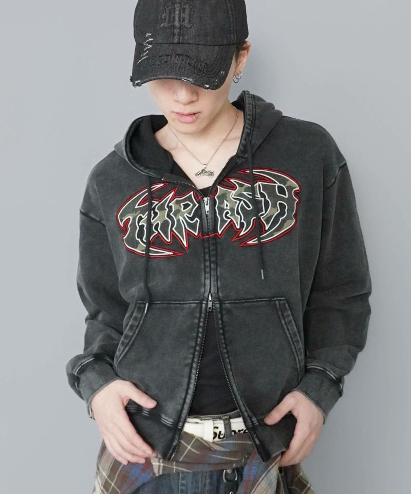 存在感抜群のカモフラージュ柄パッチワークロゴを