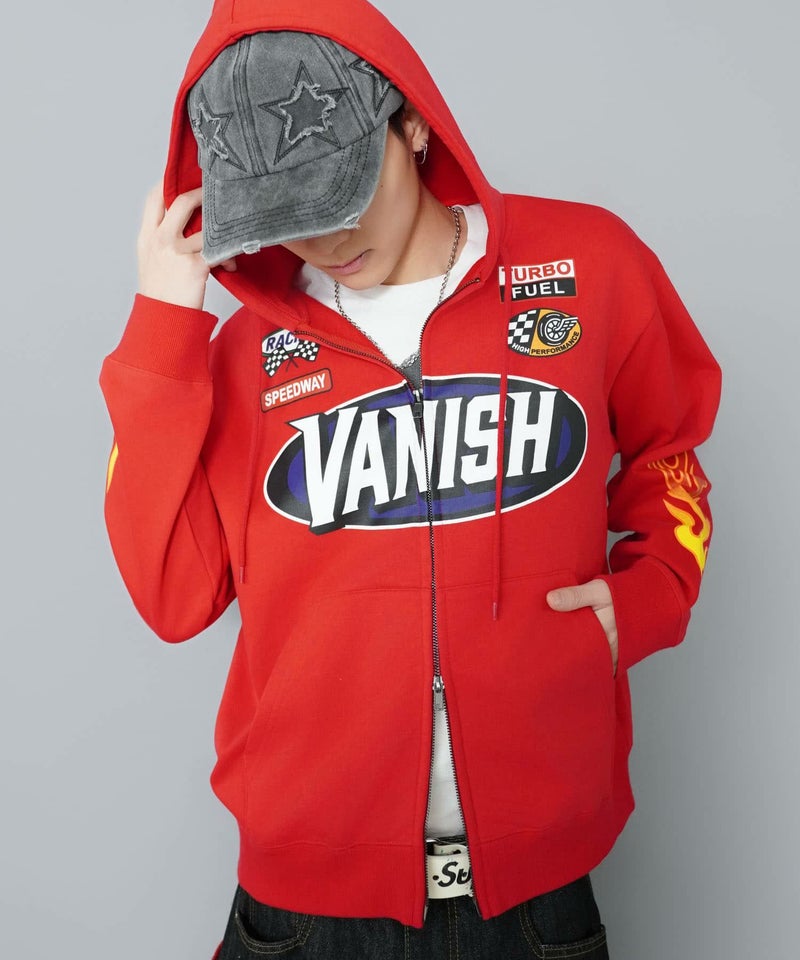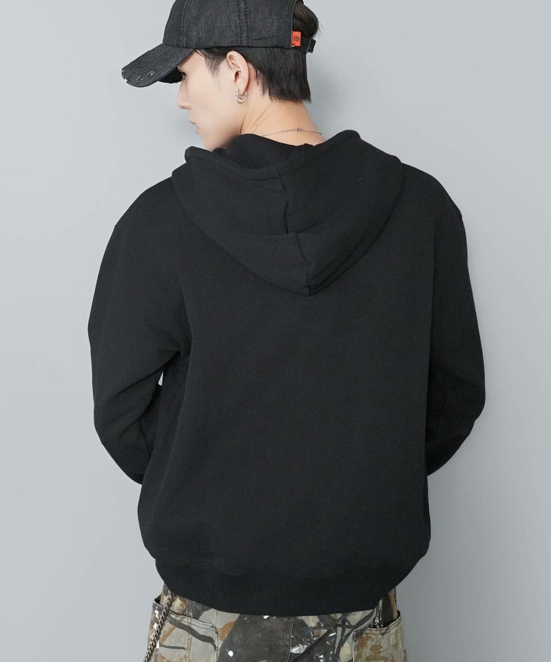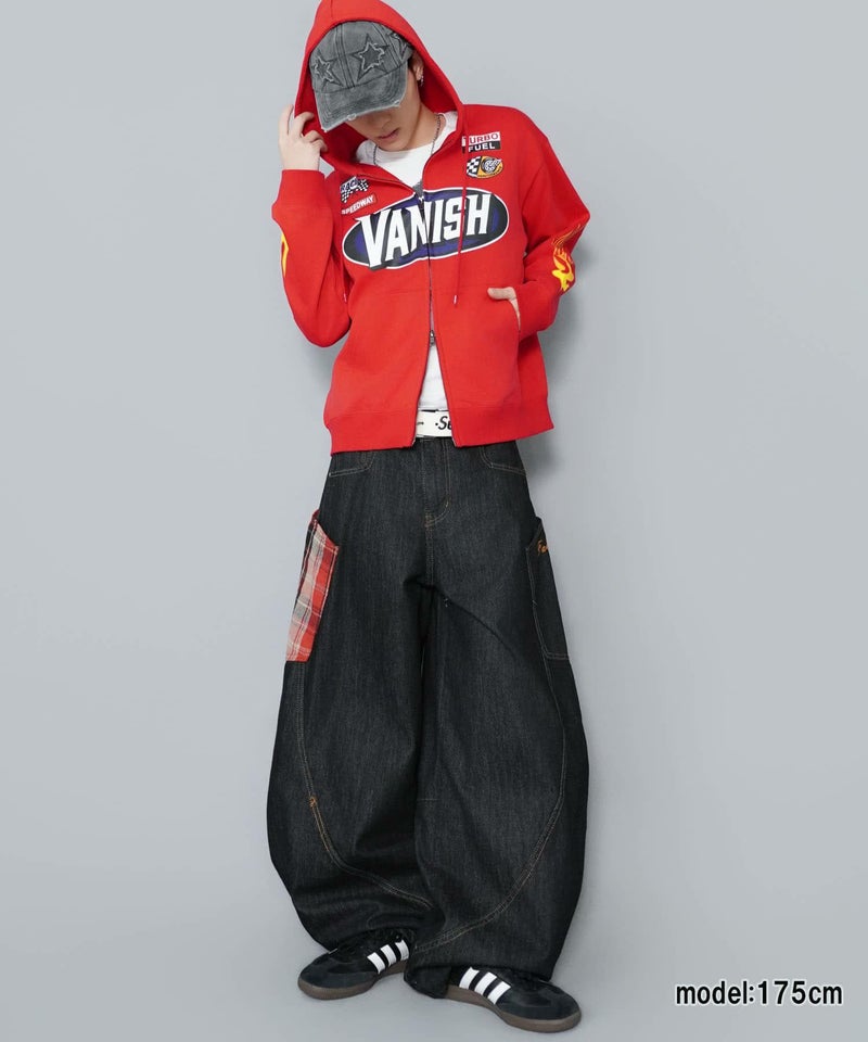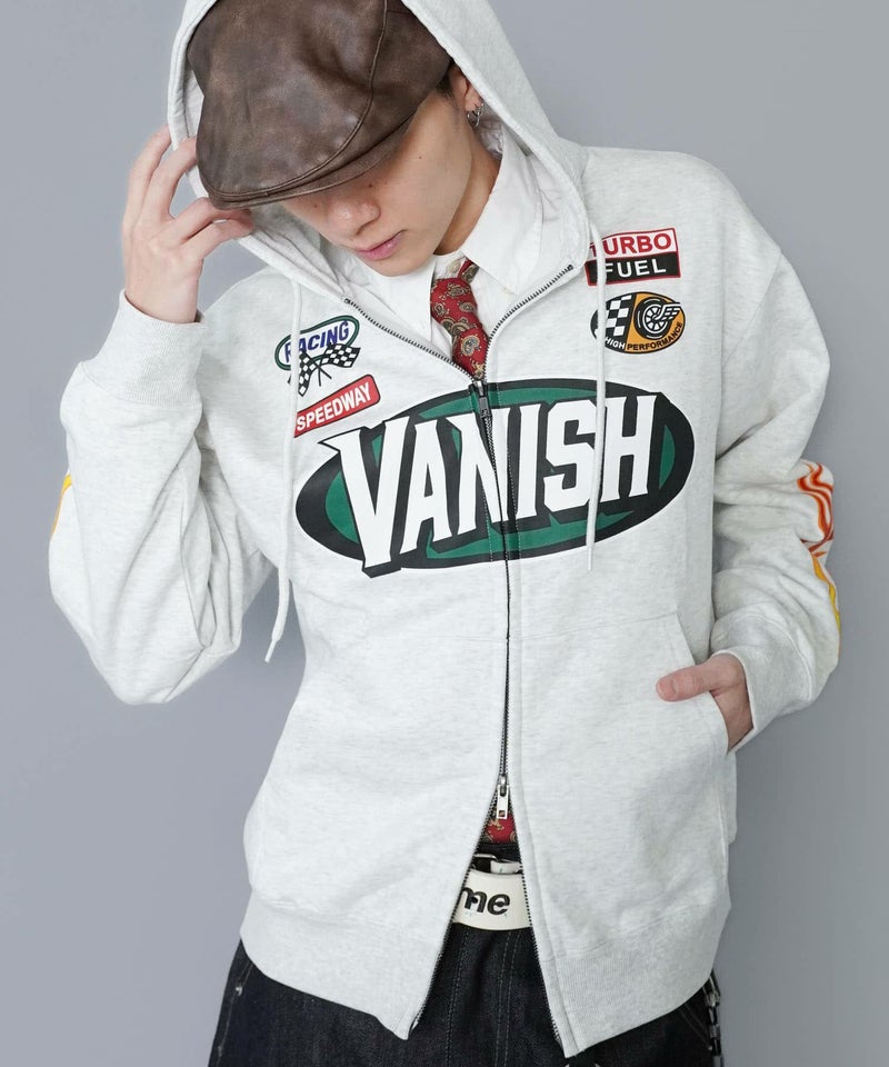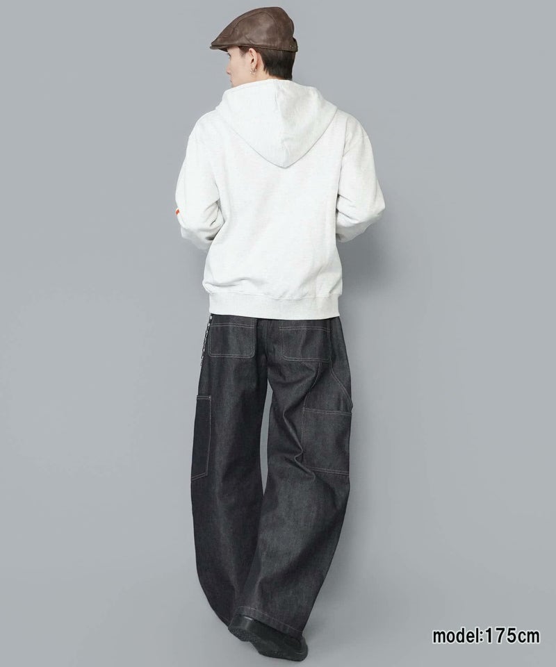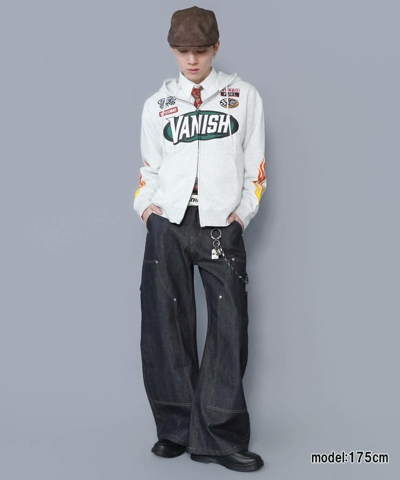 目を引くダブルジップパーカー。