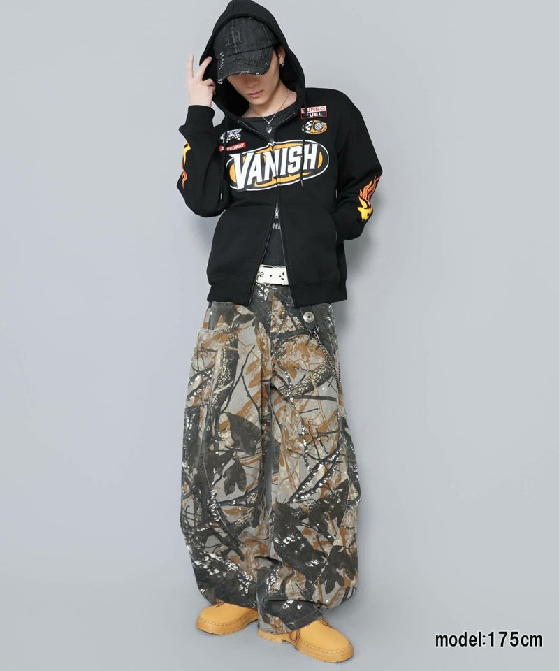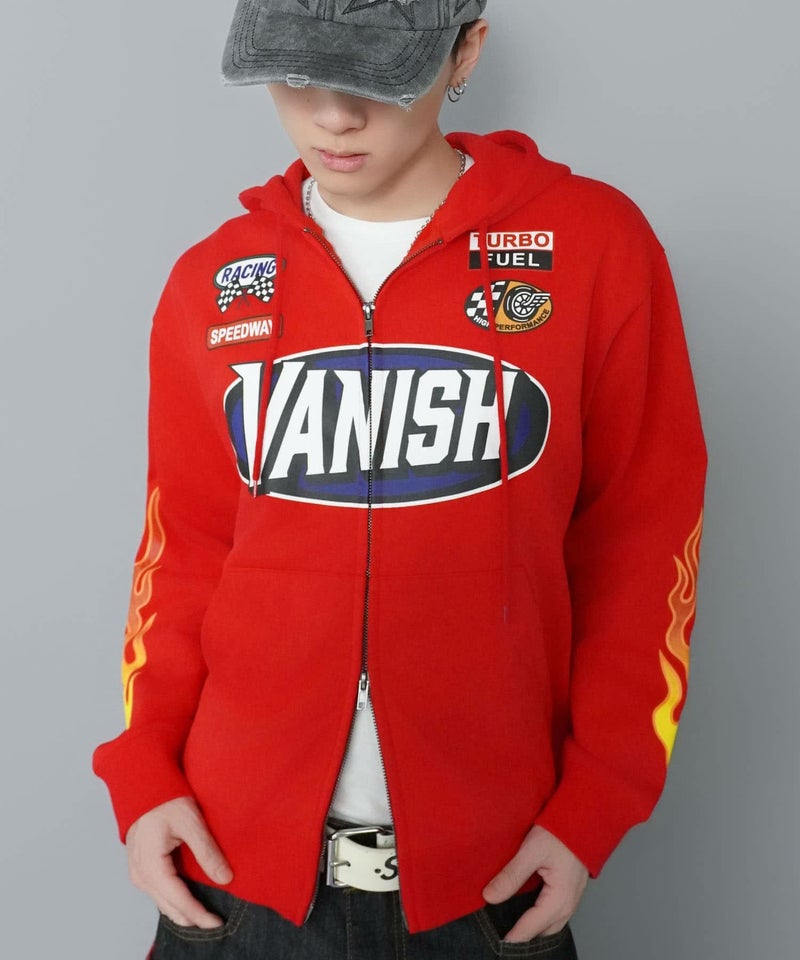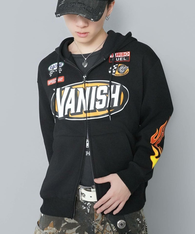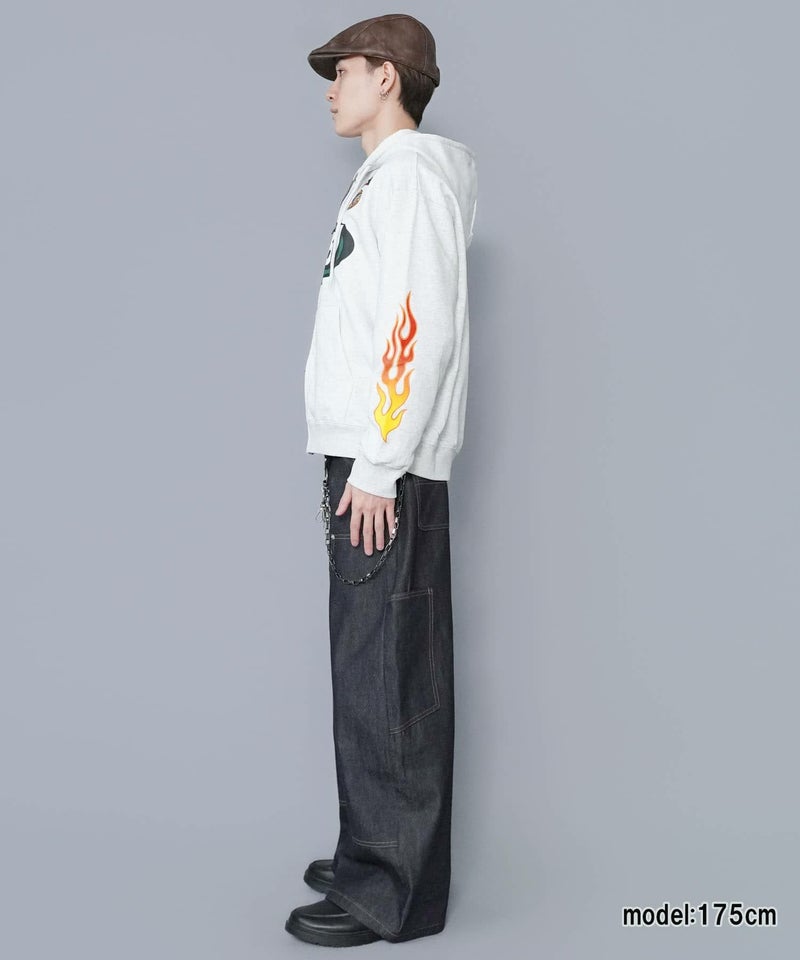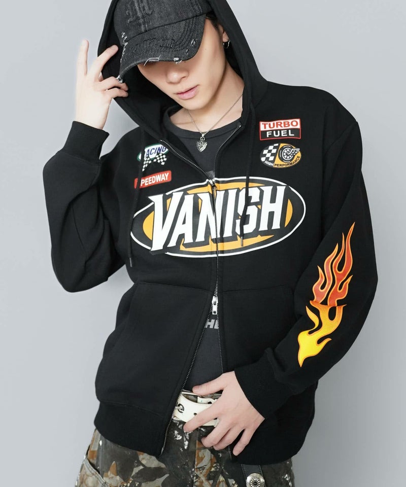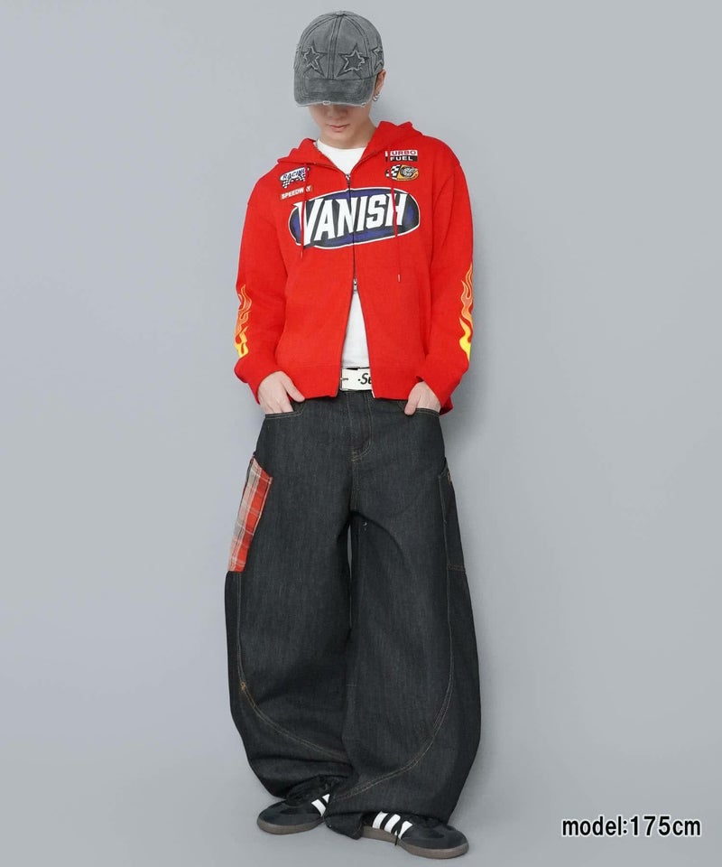 目を引くダブルジップパーカー。