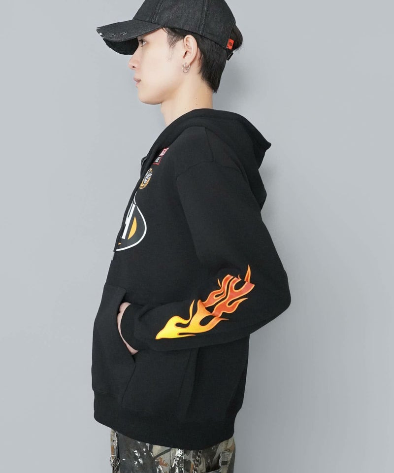 袖にはフレイム(炎)モチーフを配置し、