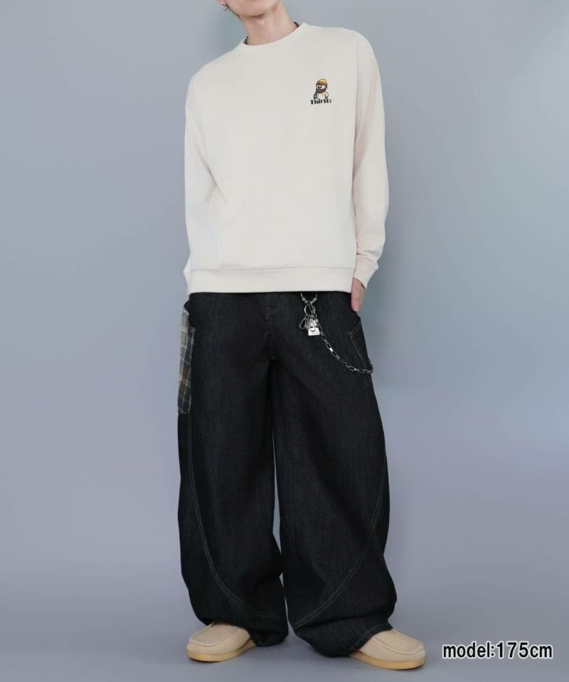 ひげおじさんシリーズ②/フェイクスエードワンポイントスウェット/刺繍ロゴ