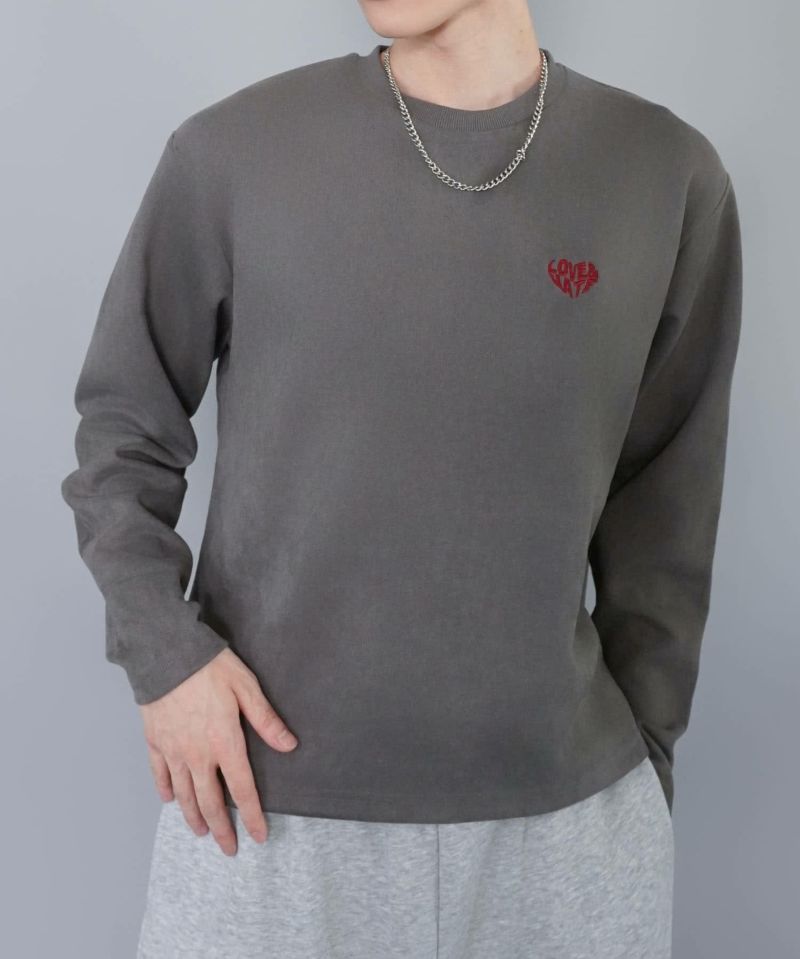 短丈フェイクスエードワンポイントスウェット/ワンポイントハート/ショート丈