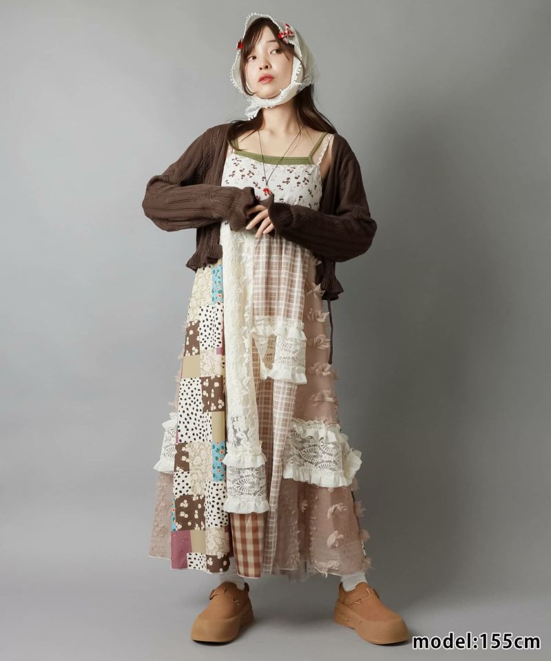 【レトロな雰囲気が可愛い!パッチワークロングキャミワンピ】