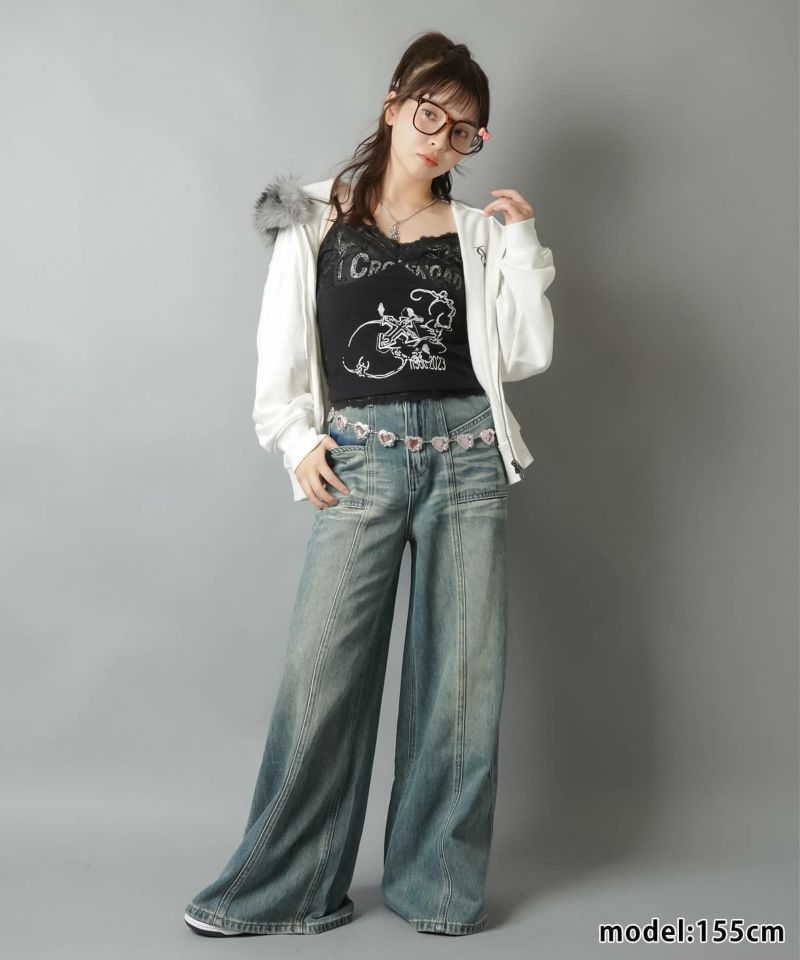 【67%OFF】ランジェリー風キャミソール/レース/クロス