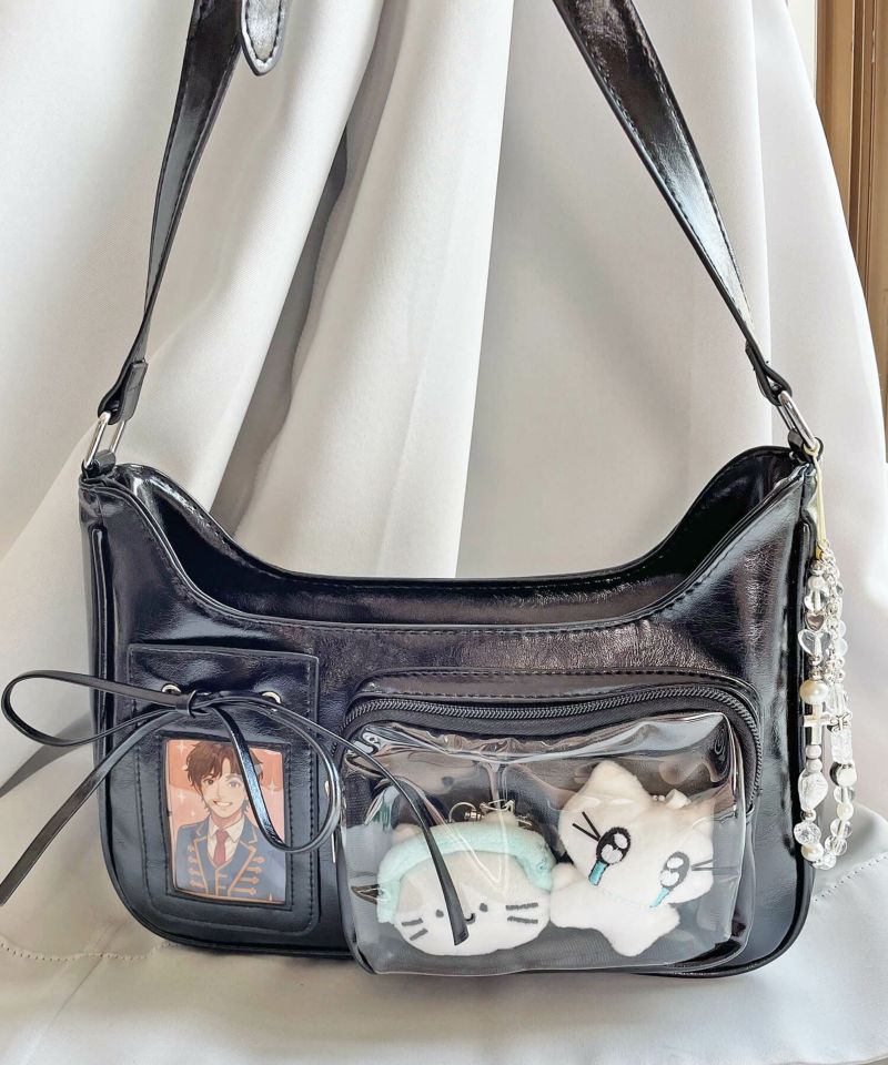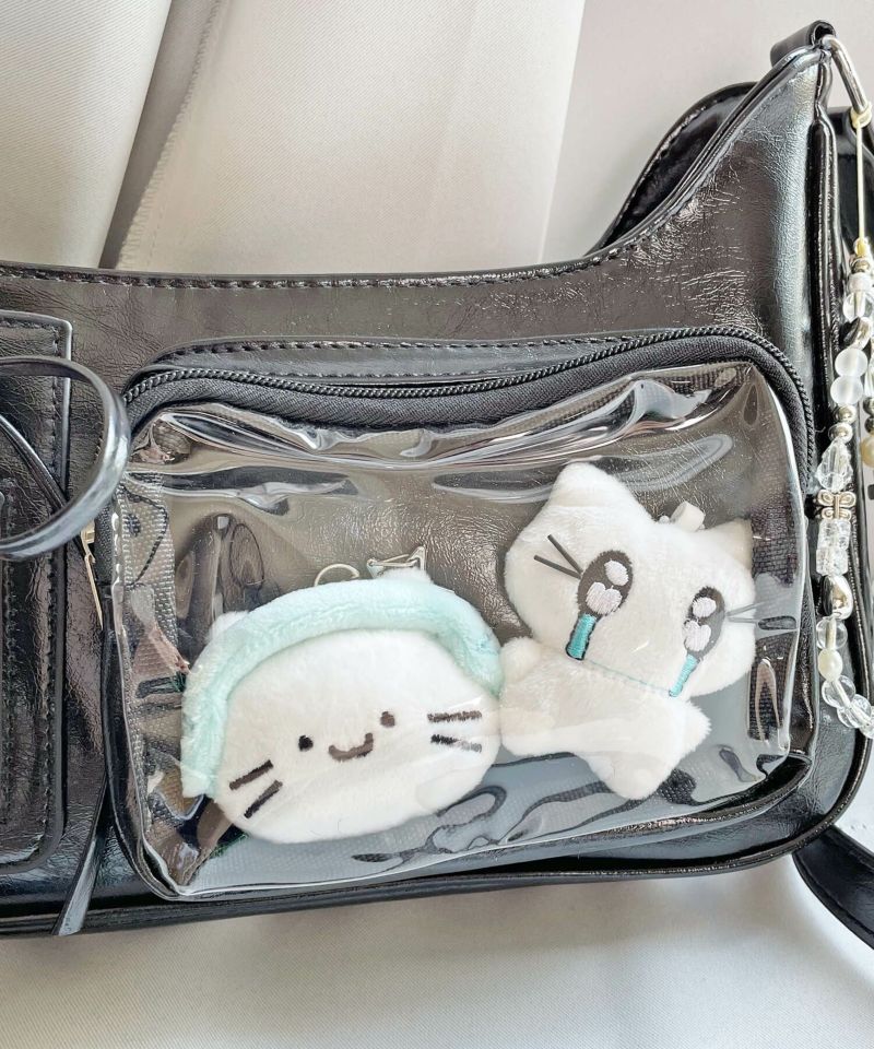痛バッグ/クリアポケットショルダーバッグ/合皮/リボン/ぬい活