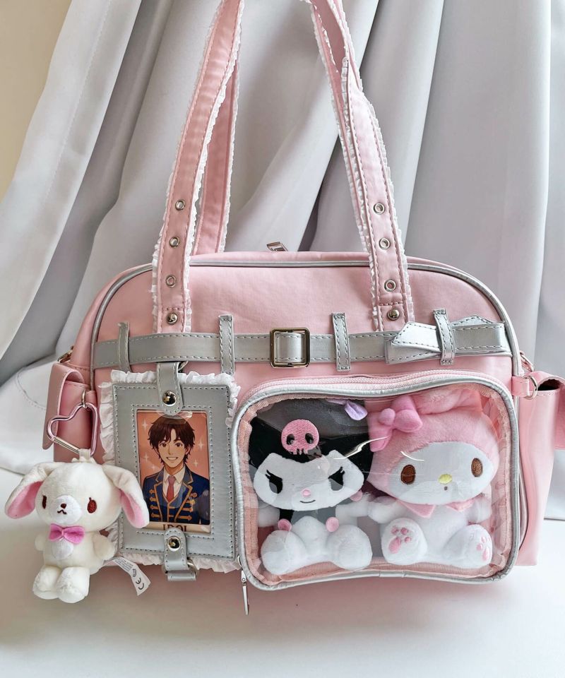 2WAY痛バッグ/クリアポケットショルダーバッグ/合皮/レース/ぬい活