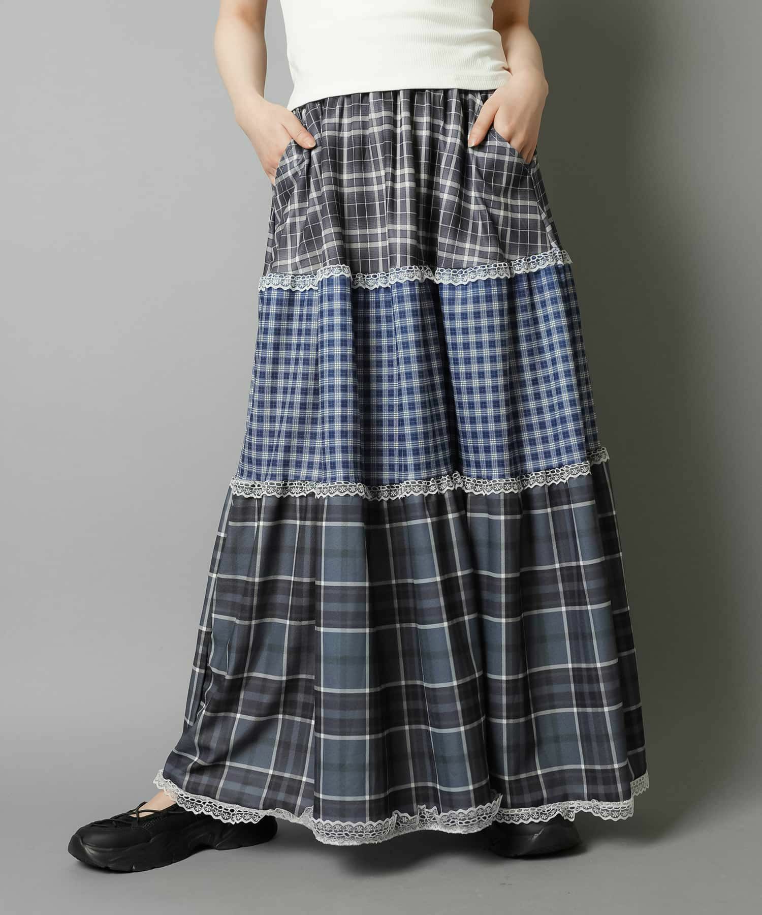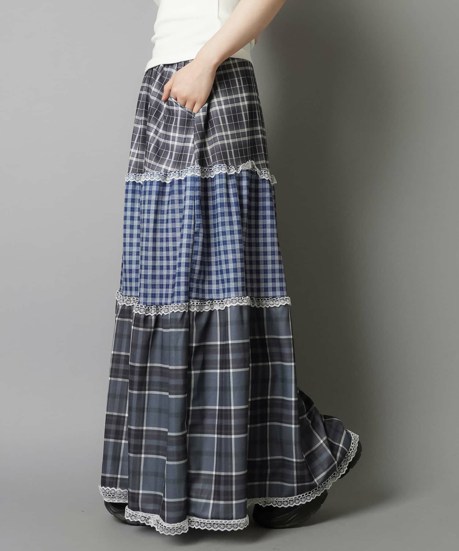 【レトロな雰囲気が可愛い!ツギハギチェックロングスカート】