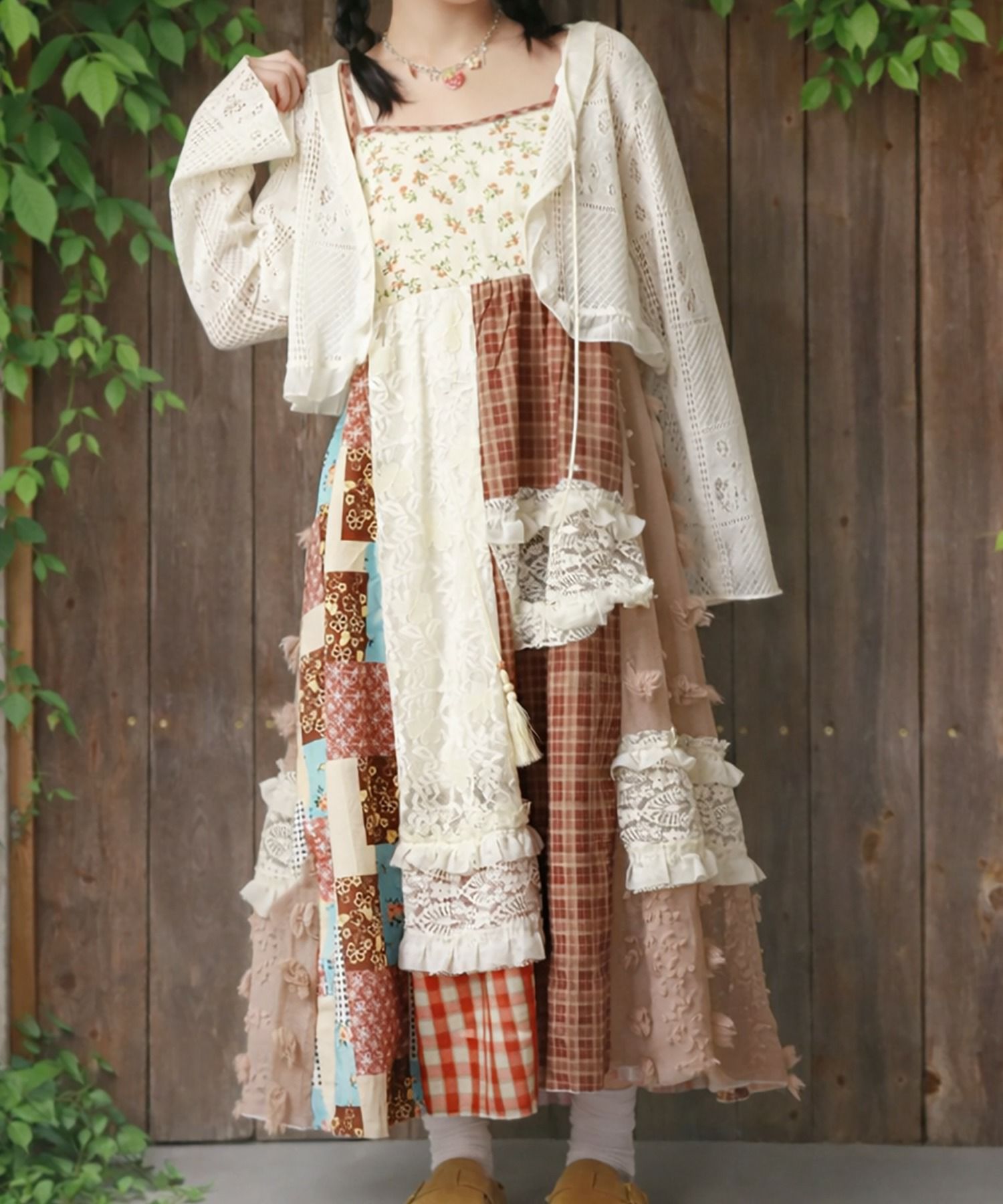 【レイヤード、アースカラー、ダスティカラー、カーディガン、ヘッドアクセ、ナチュラル、レース、ファー】