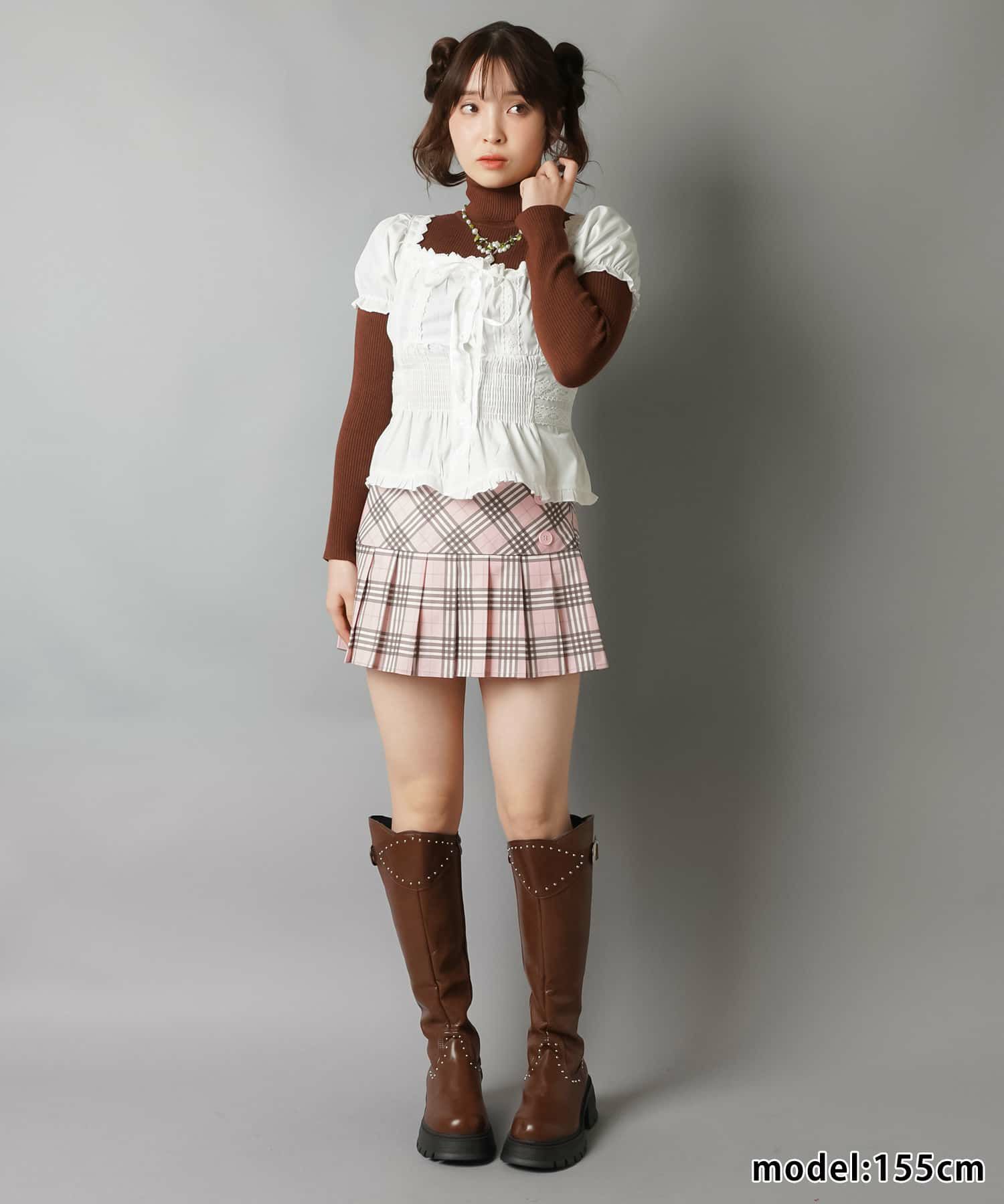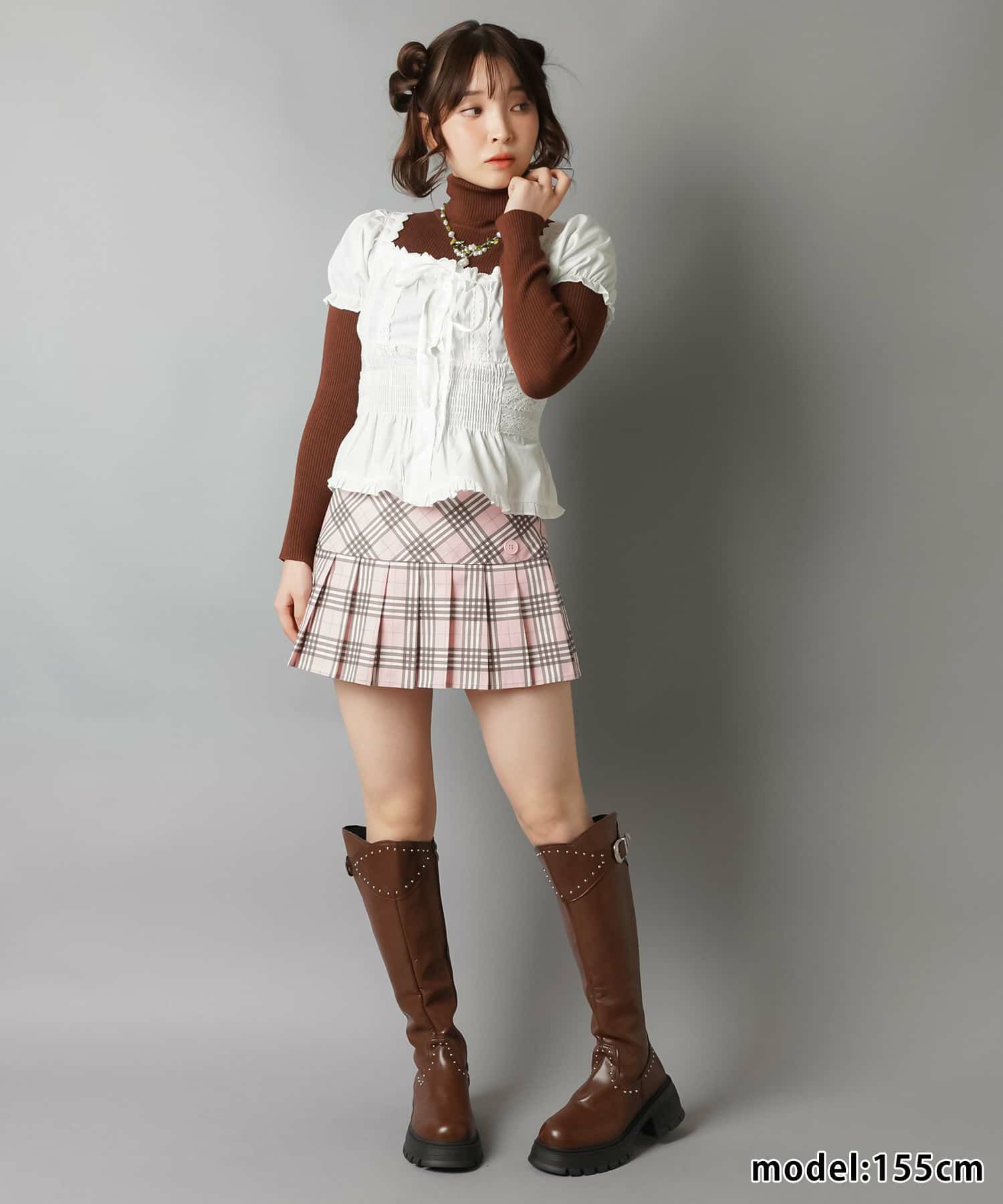 【86%OFF】チェック柄プリーツミニスカート/タイト/ローウエスト/インナーパンツ付き