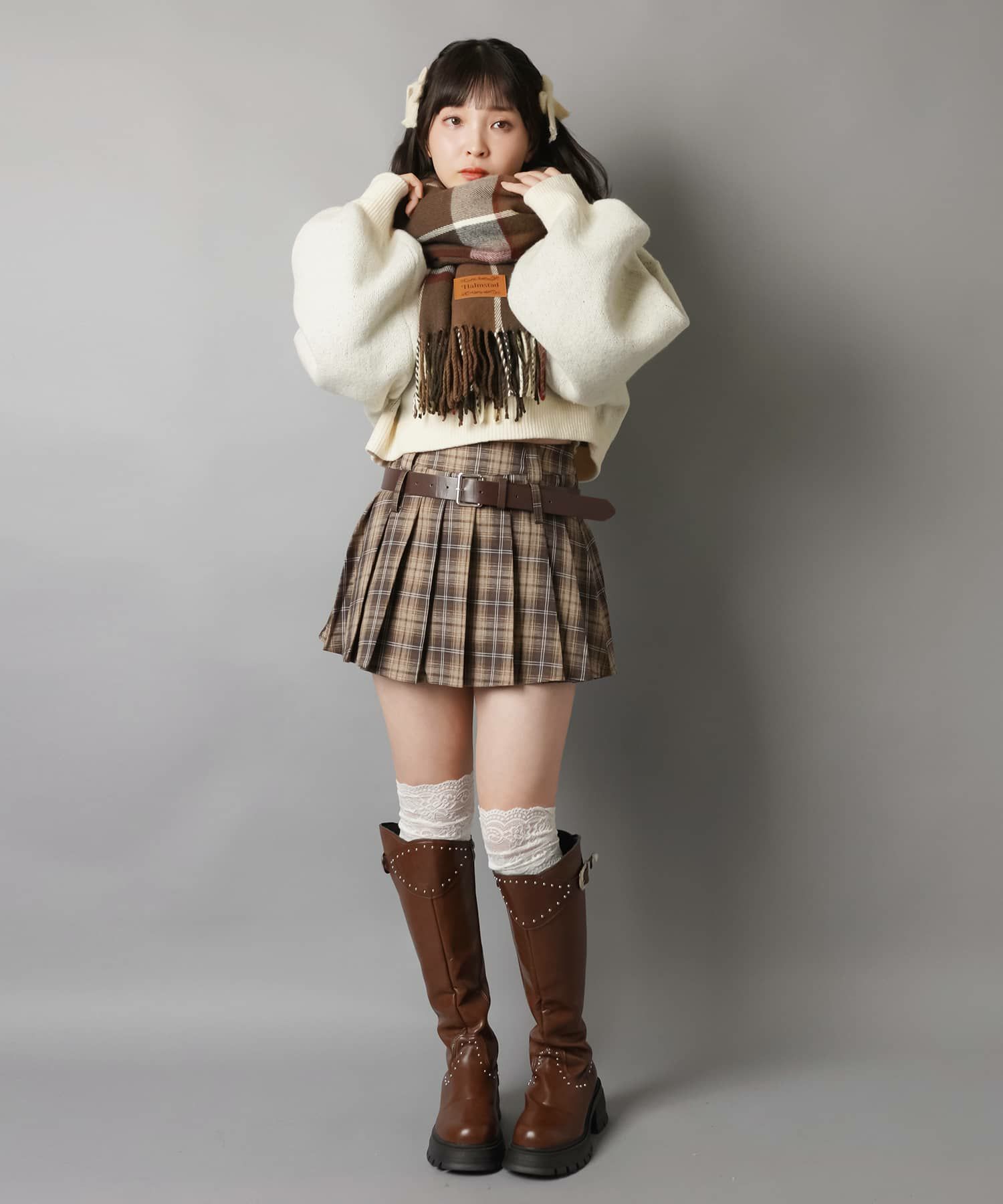 毎年人気のチェック柄ストールは、巻くだけで季節感が出て、どんなコーデも一気に冬らしく仕上がります。