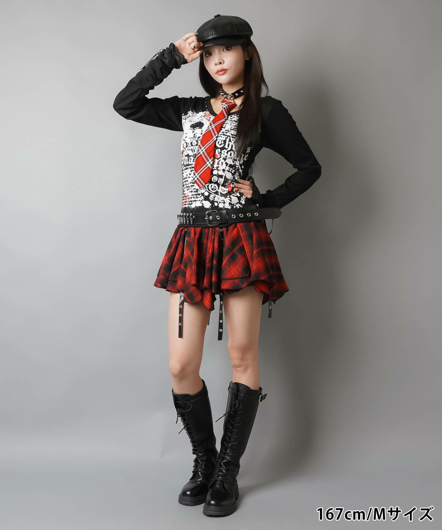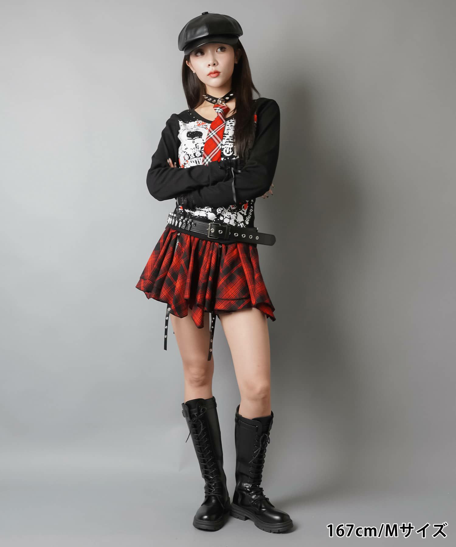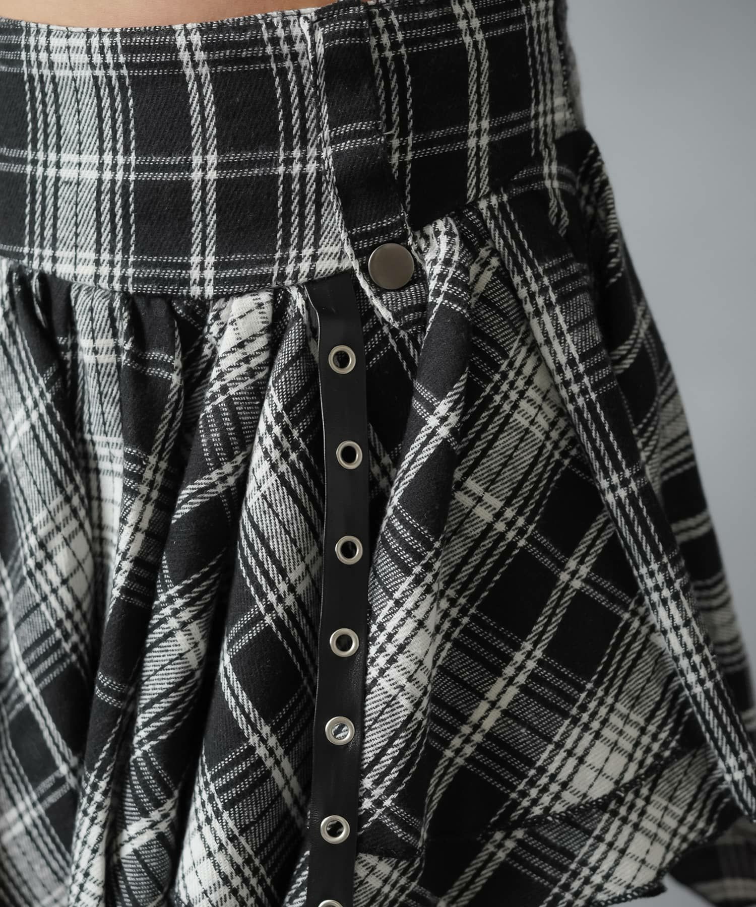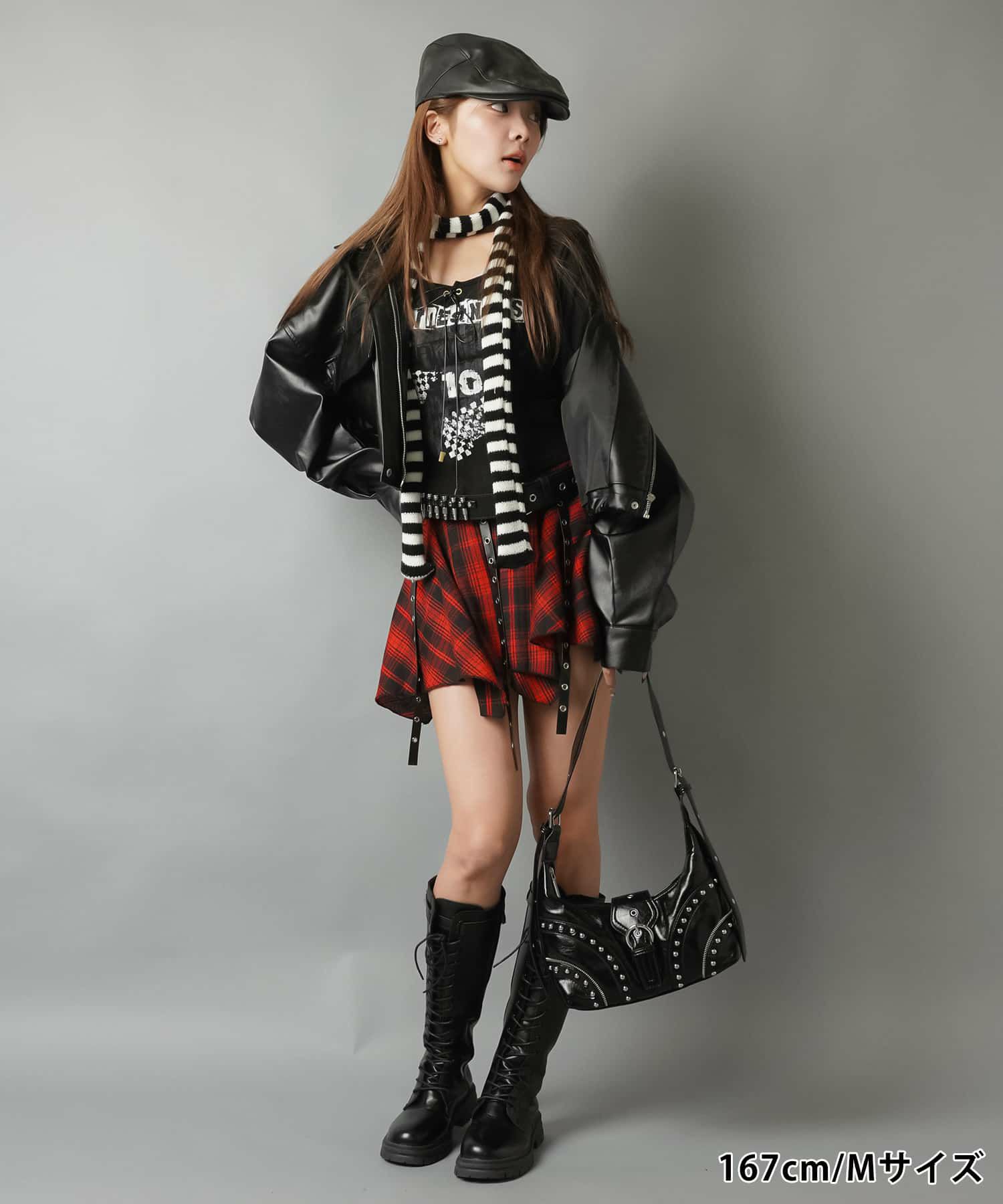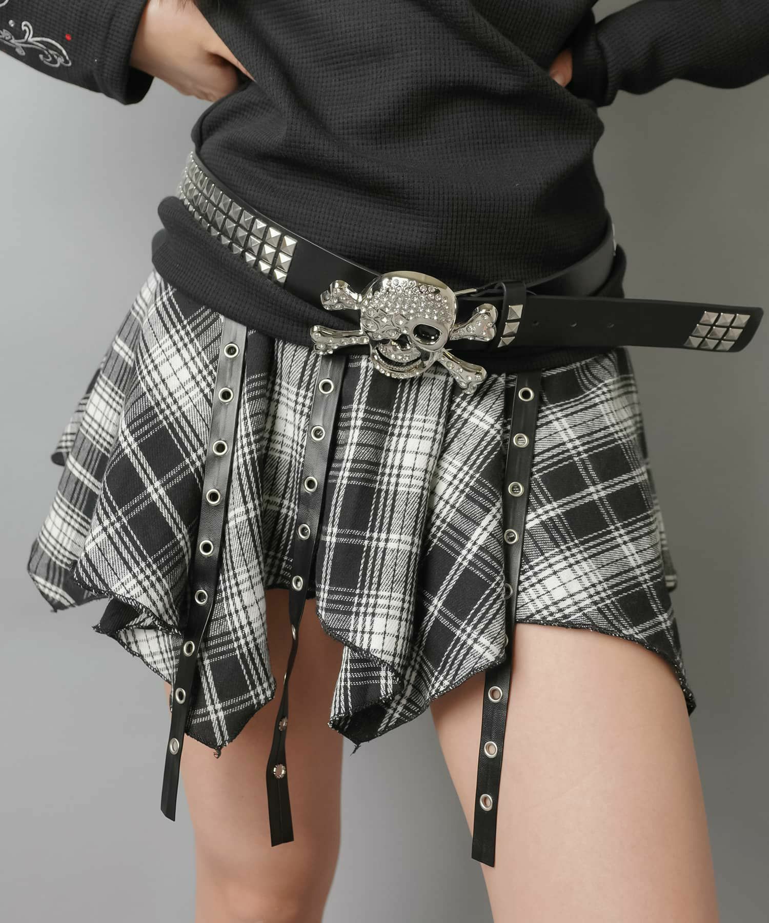 2:フロントのベルトでデザイン性のあるミニスカート
