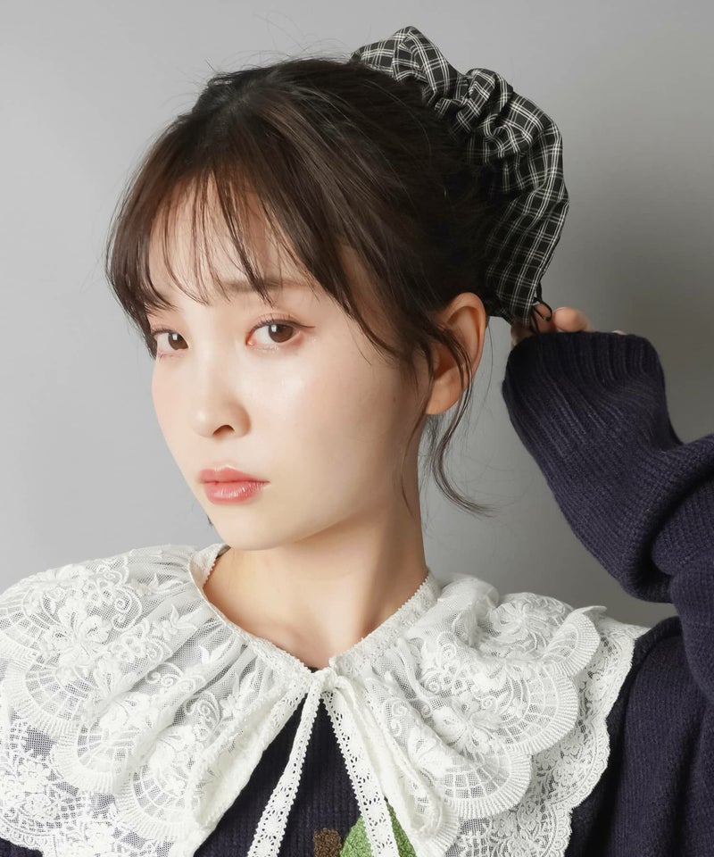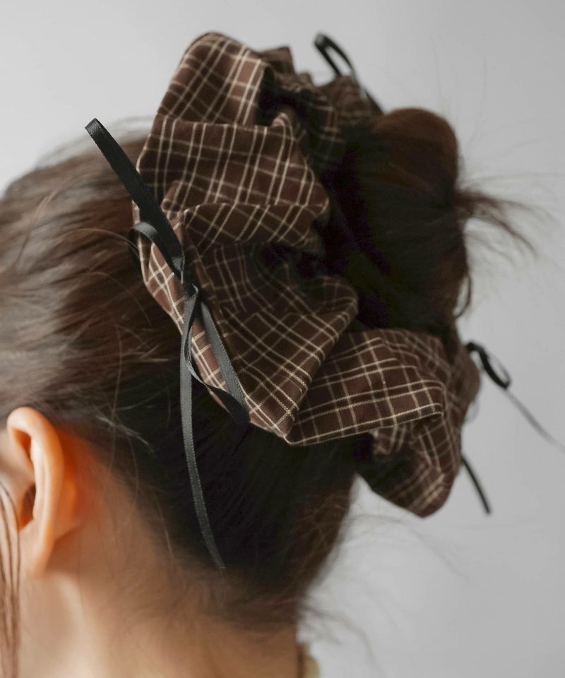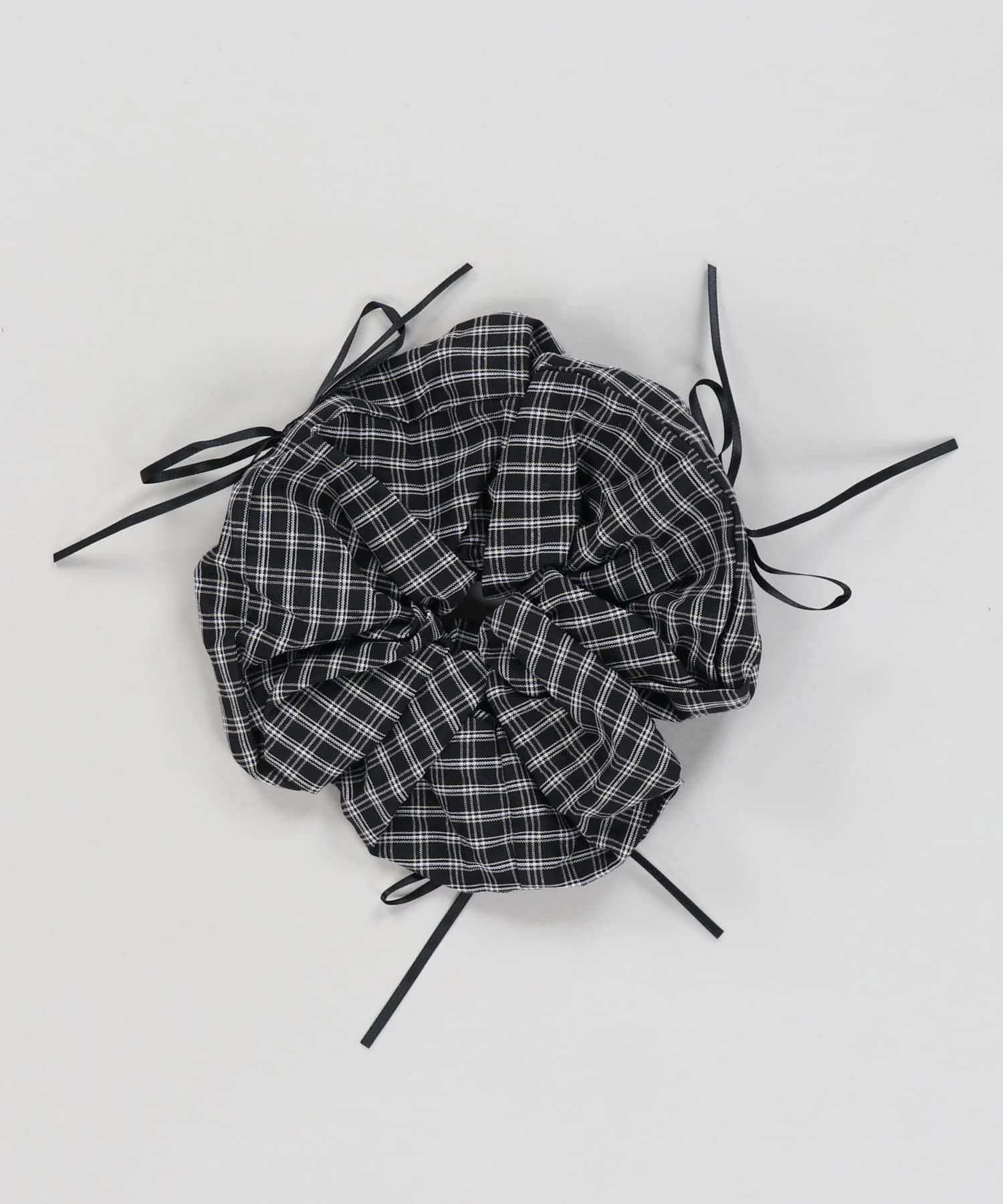 チェックシュシュ/ブラックリボン<メール便対応>