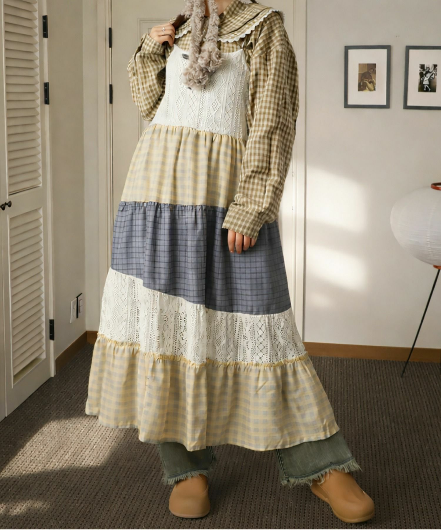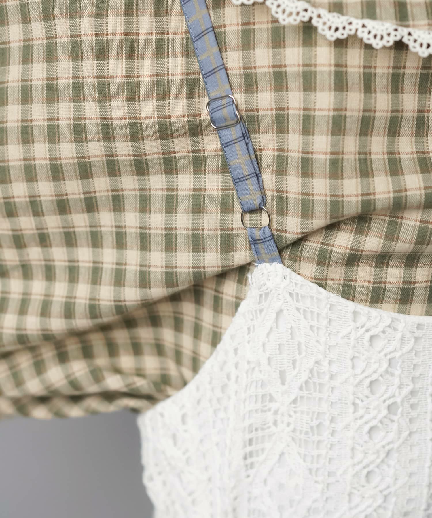 2:レースやチェックがアソートに組み合わさっていて一枚で主役級のキャミワンピ