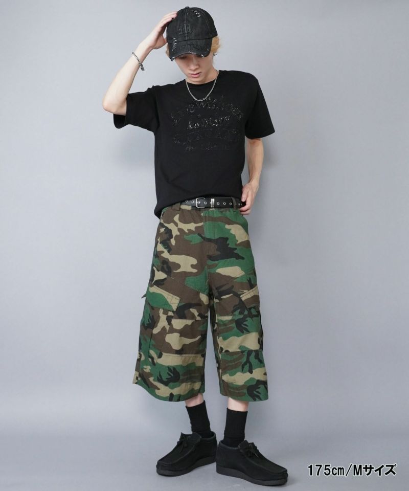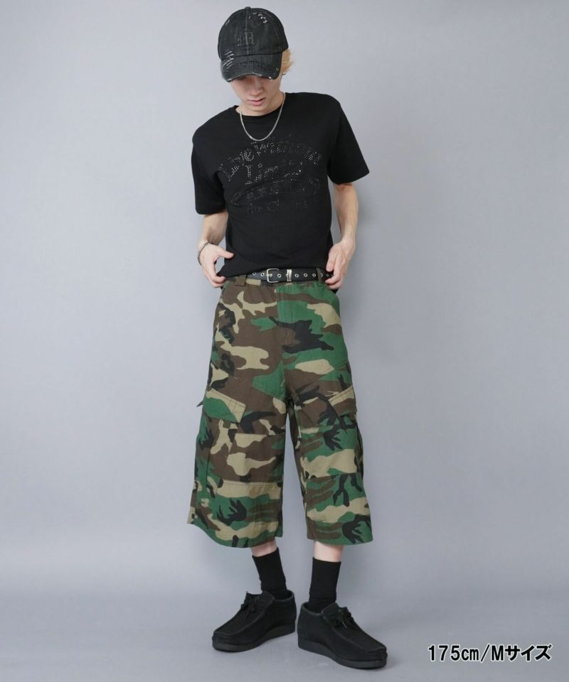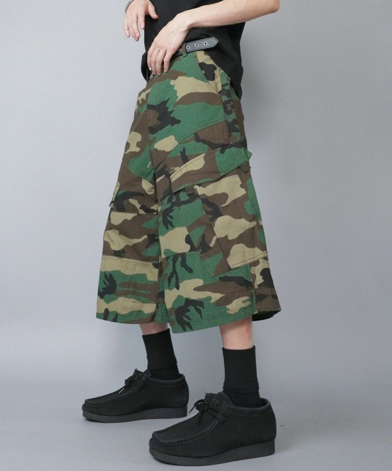 トレンドのミリタリーテイストを感じさせるカモフラ柄が特徴で、