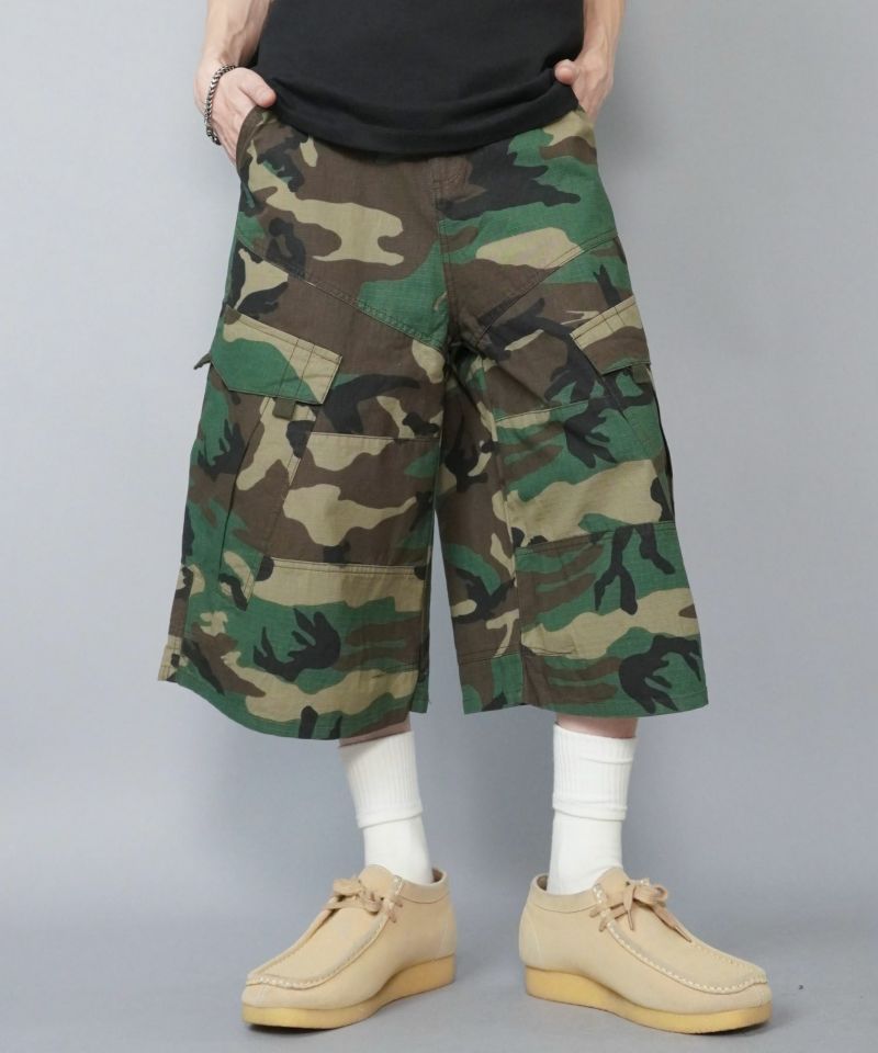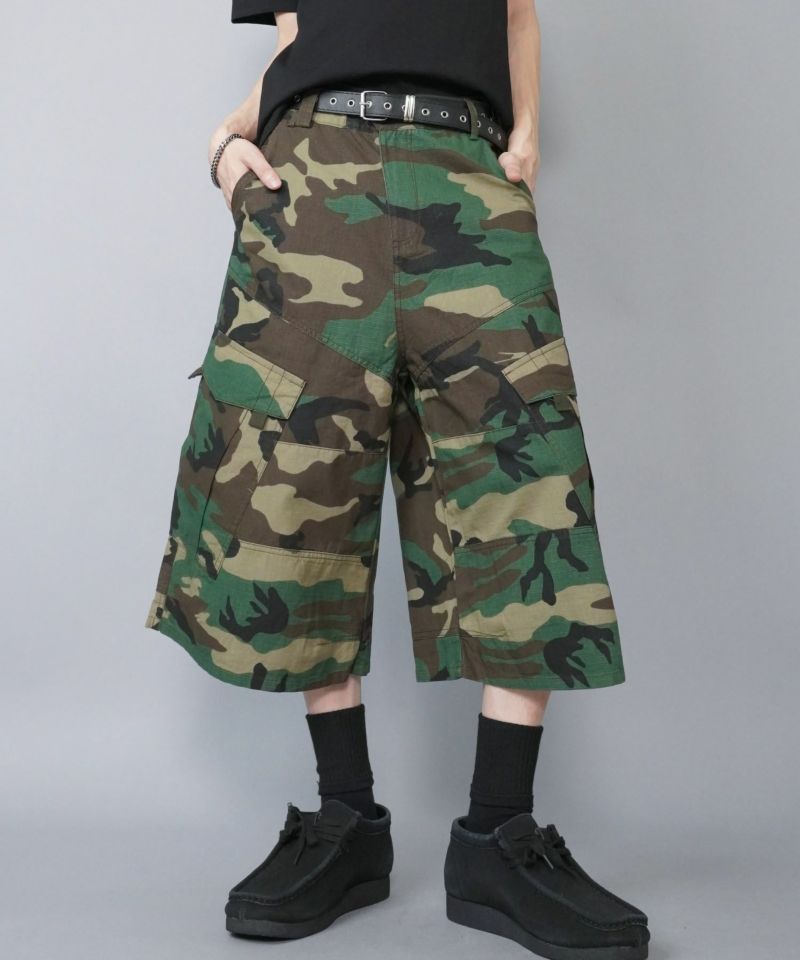 今年っぽい膝下丈のカモ柄ロングハーフパンツ