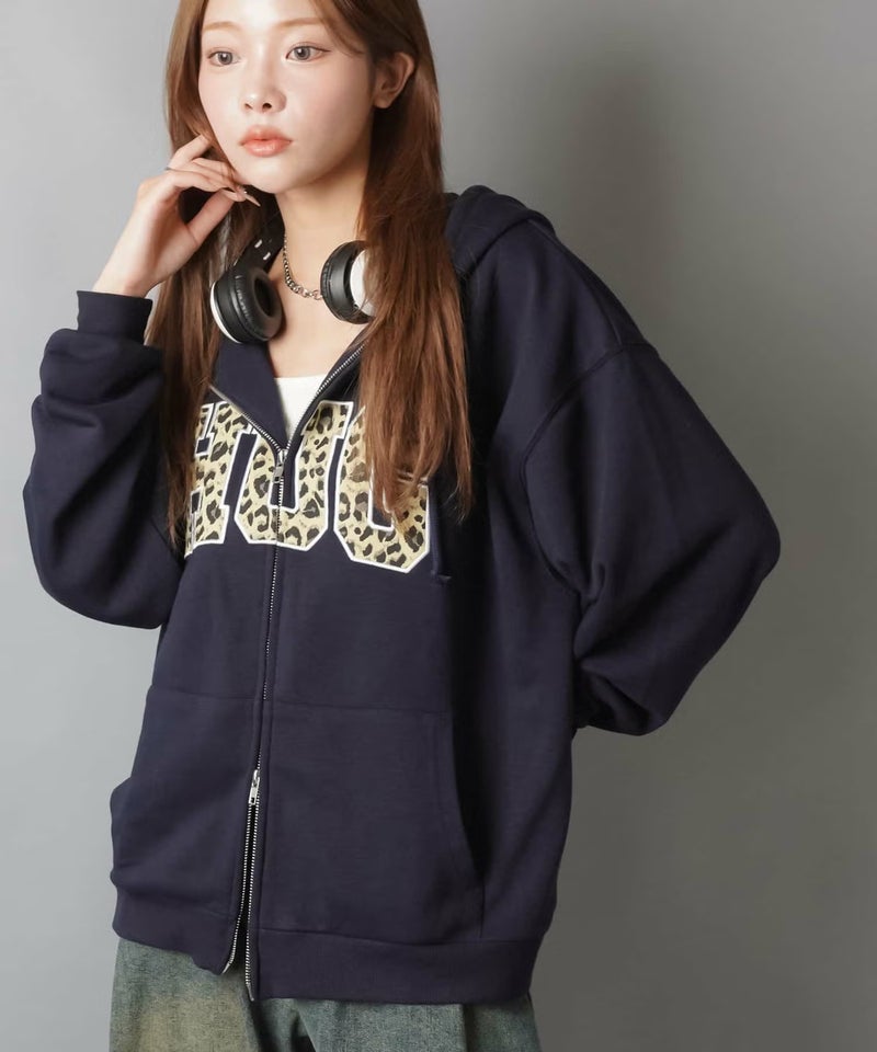 大胆なレオパードロゴがコーデのアクセントになる、存在感バツグンのWジップパーカー。