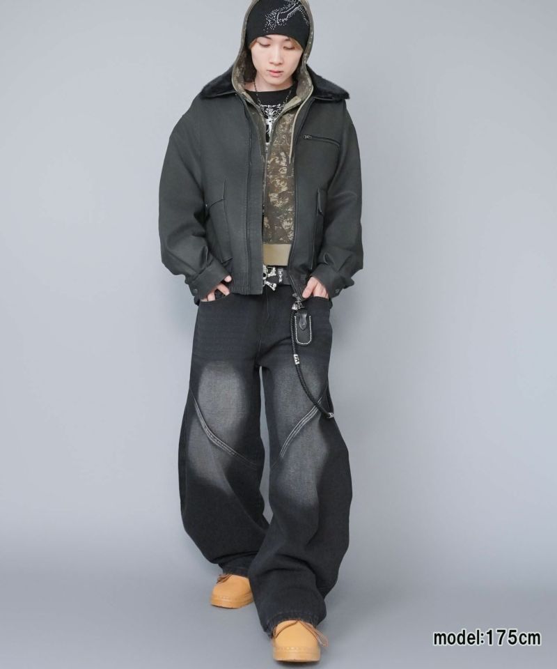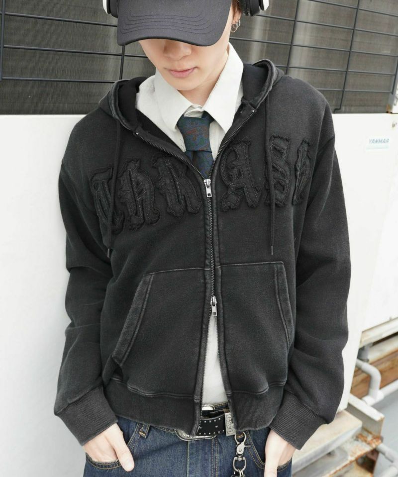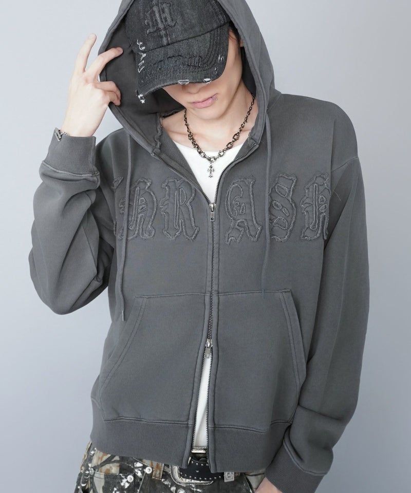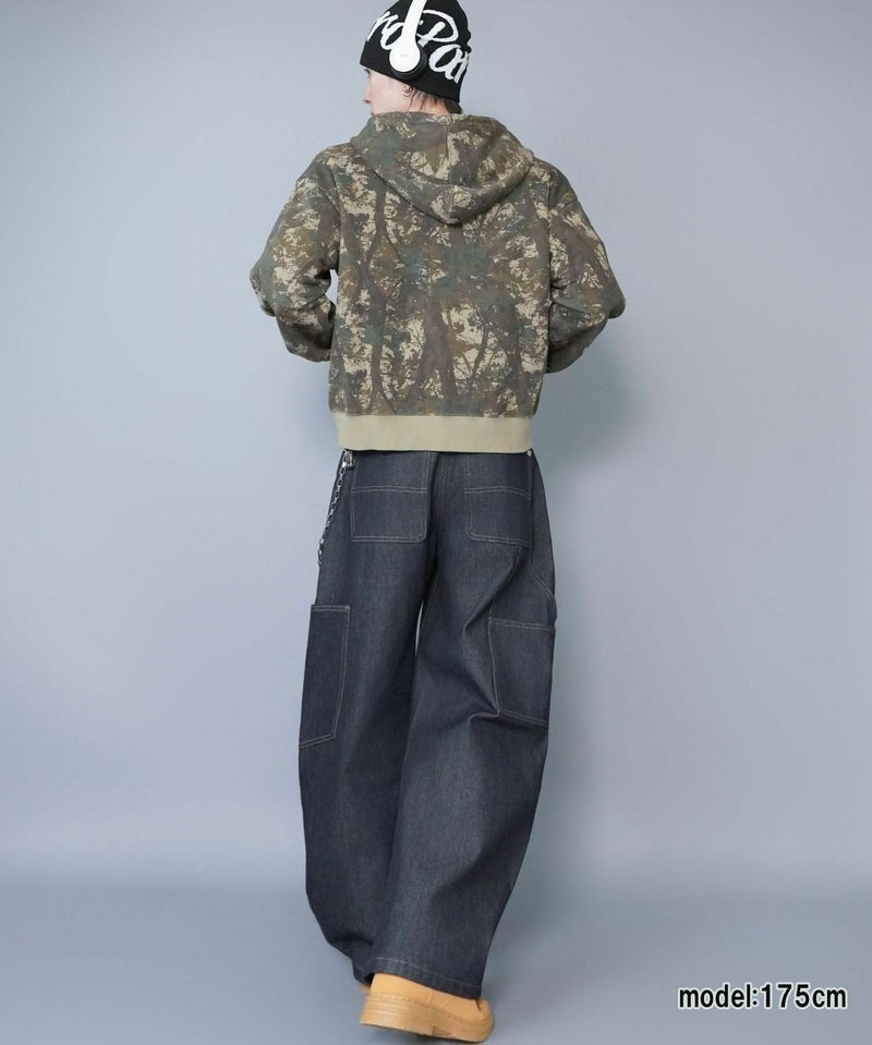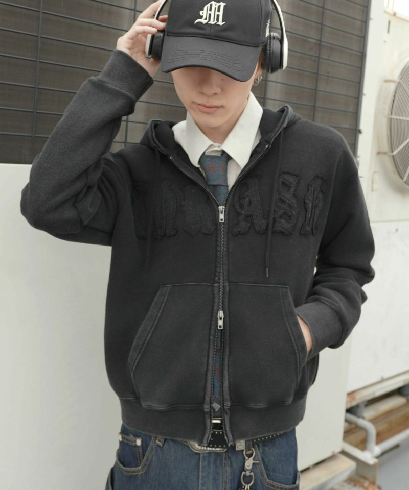 ワークテイストを感じさせる 短丈ダブルジップパーカー。