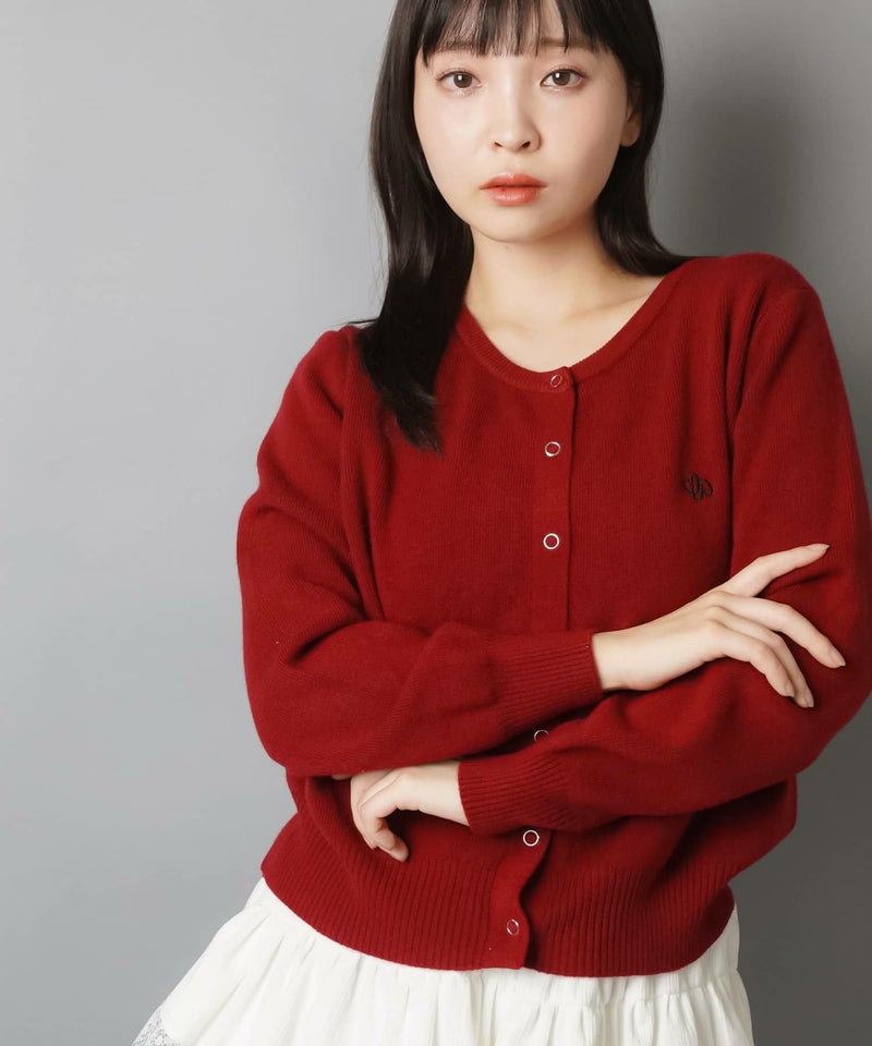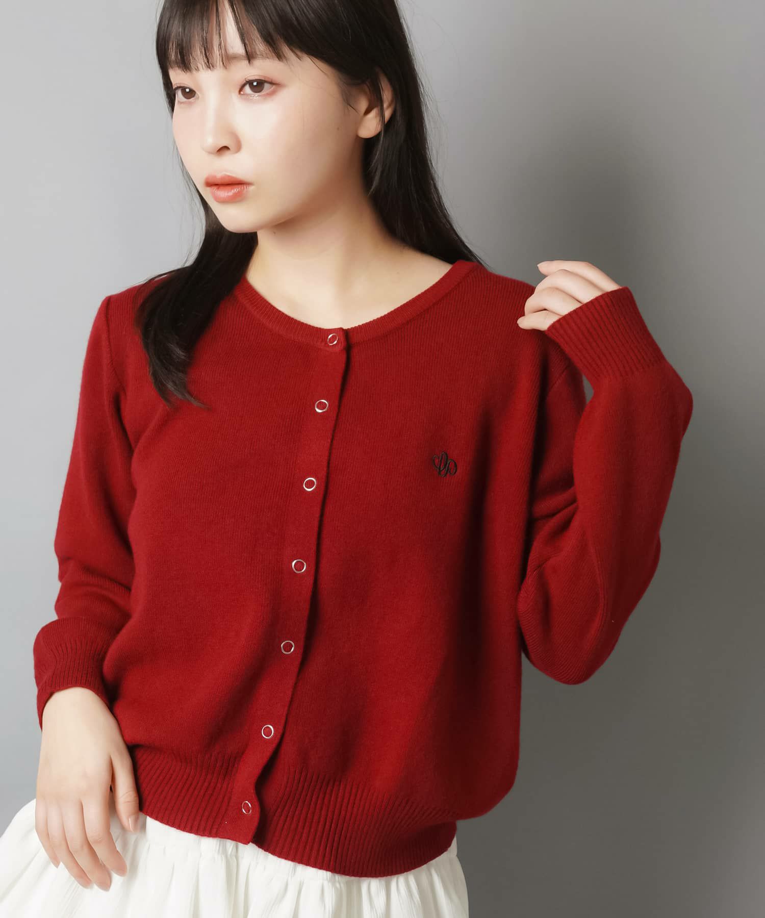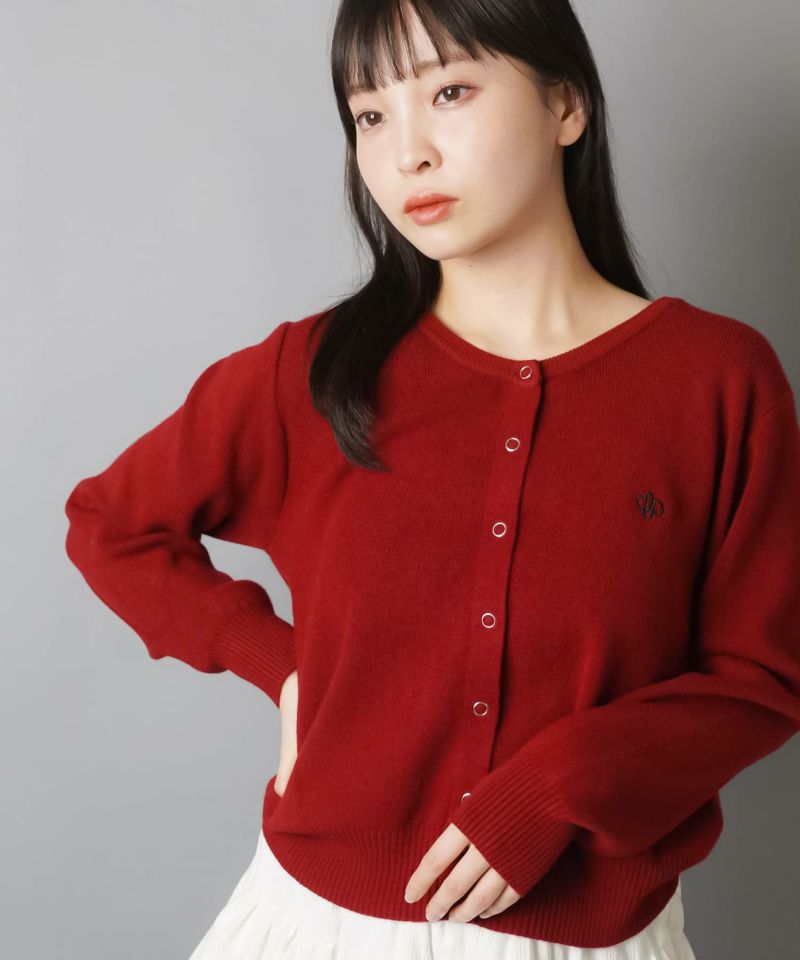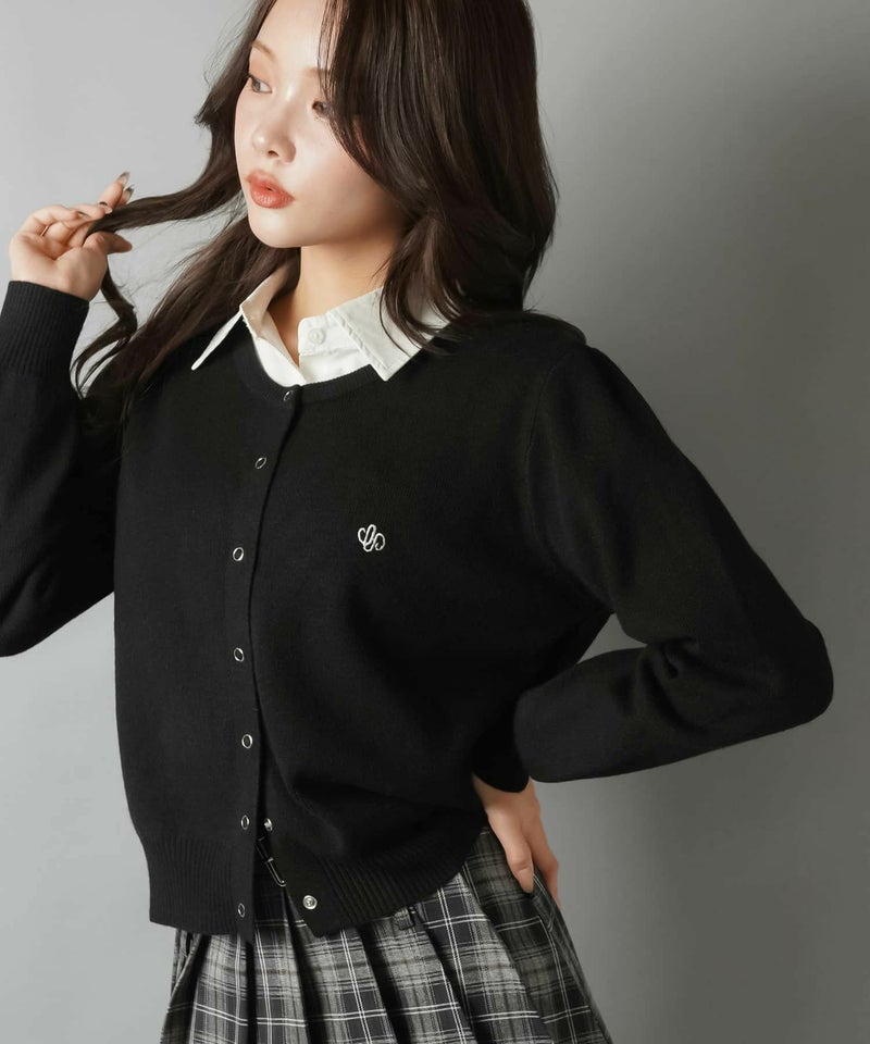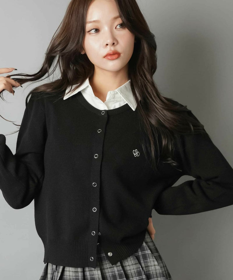 1:シンプルなワンポイント刺繍のスナップボタンカーディガン